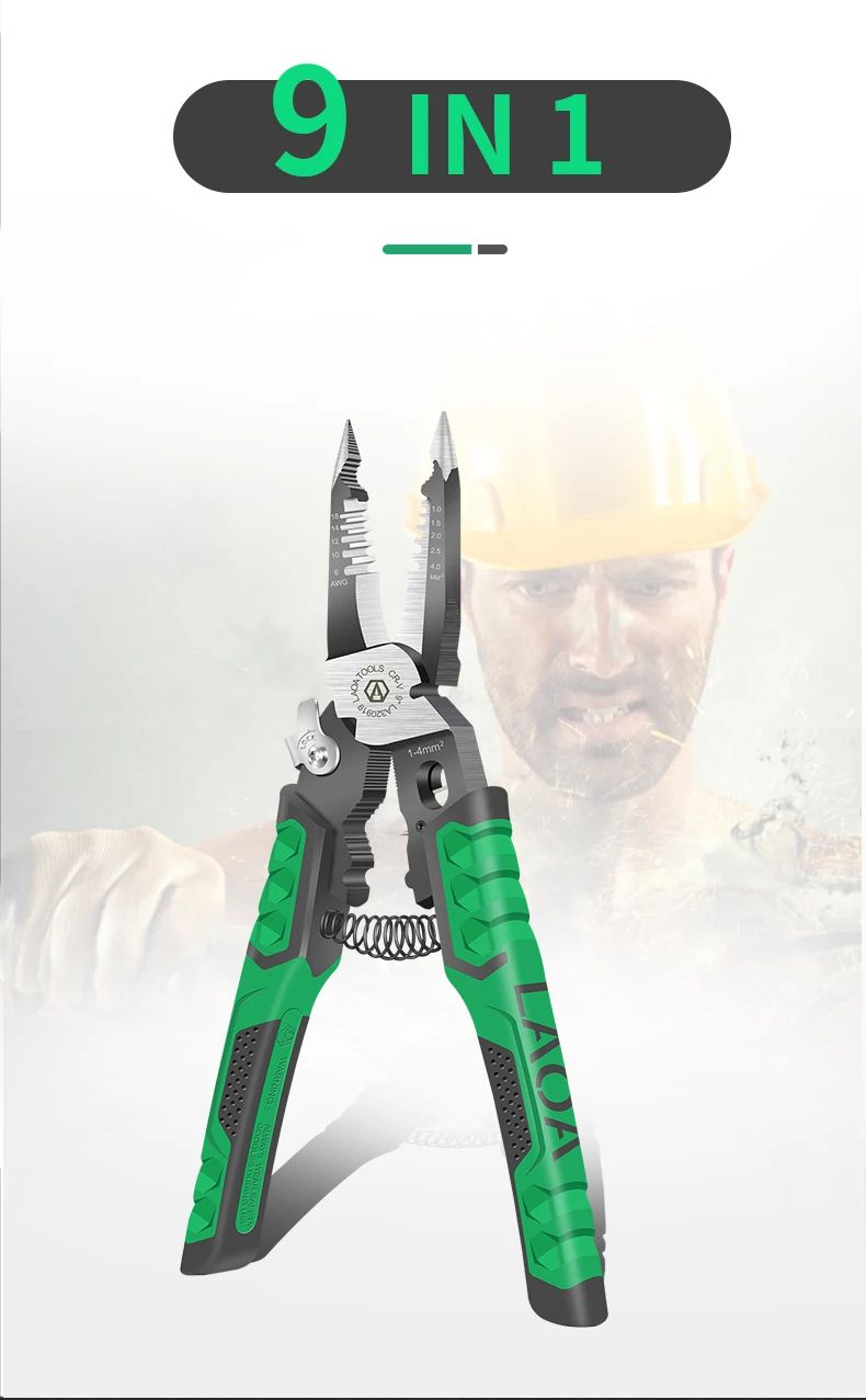 Многофункциональные плоскогубцы LAOA, заостренный нос, плоскогубцы для зачистки проводов, 9 дюймов, обжимной инструмент