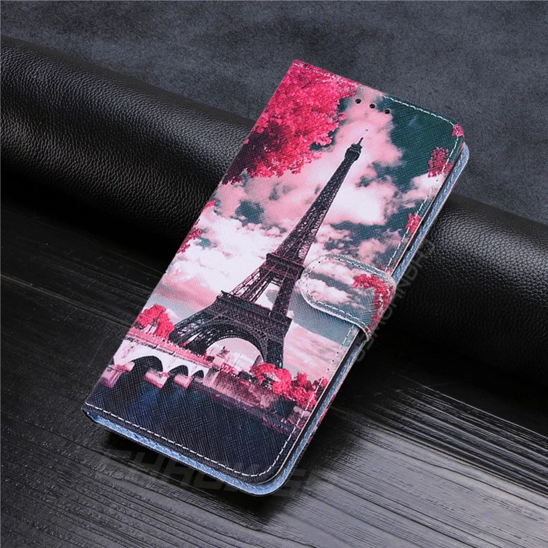 Чехол-книжка с изображением цветов и башни для Huawei P20 P30 Pro P...