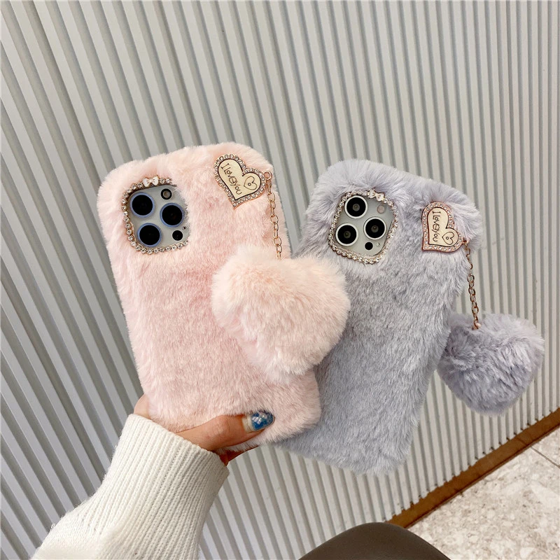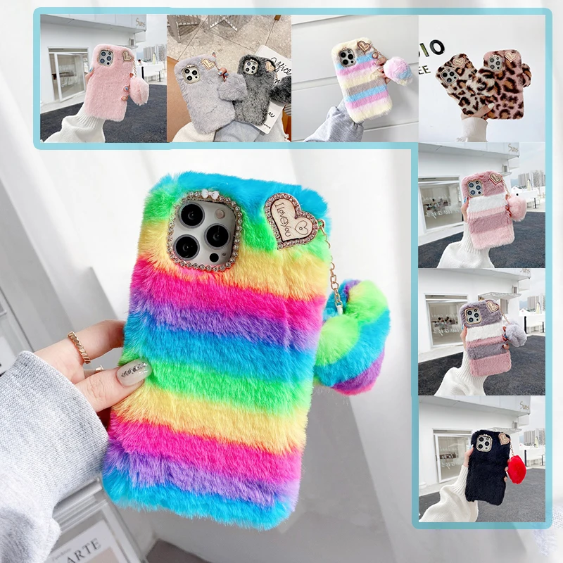 Плюшевые меховые Мягкие силиконовые подвесные чехлы для телефонов H...