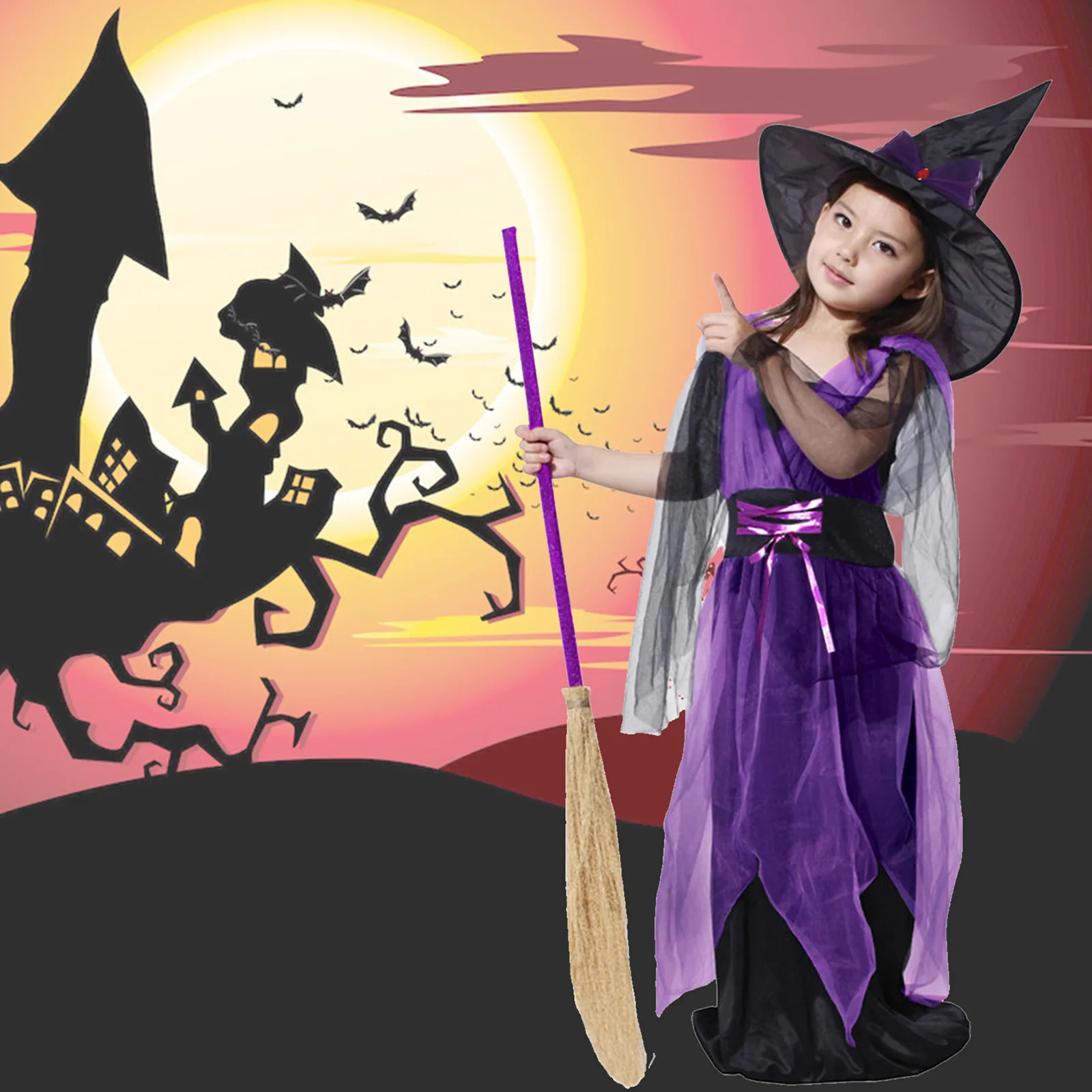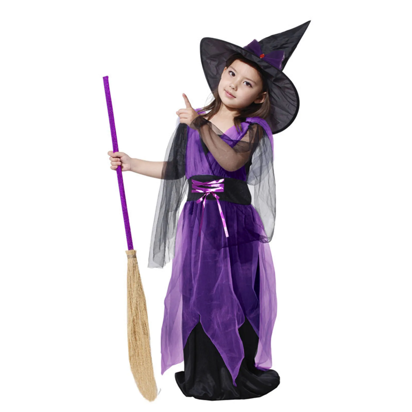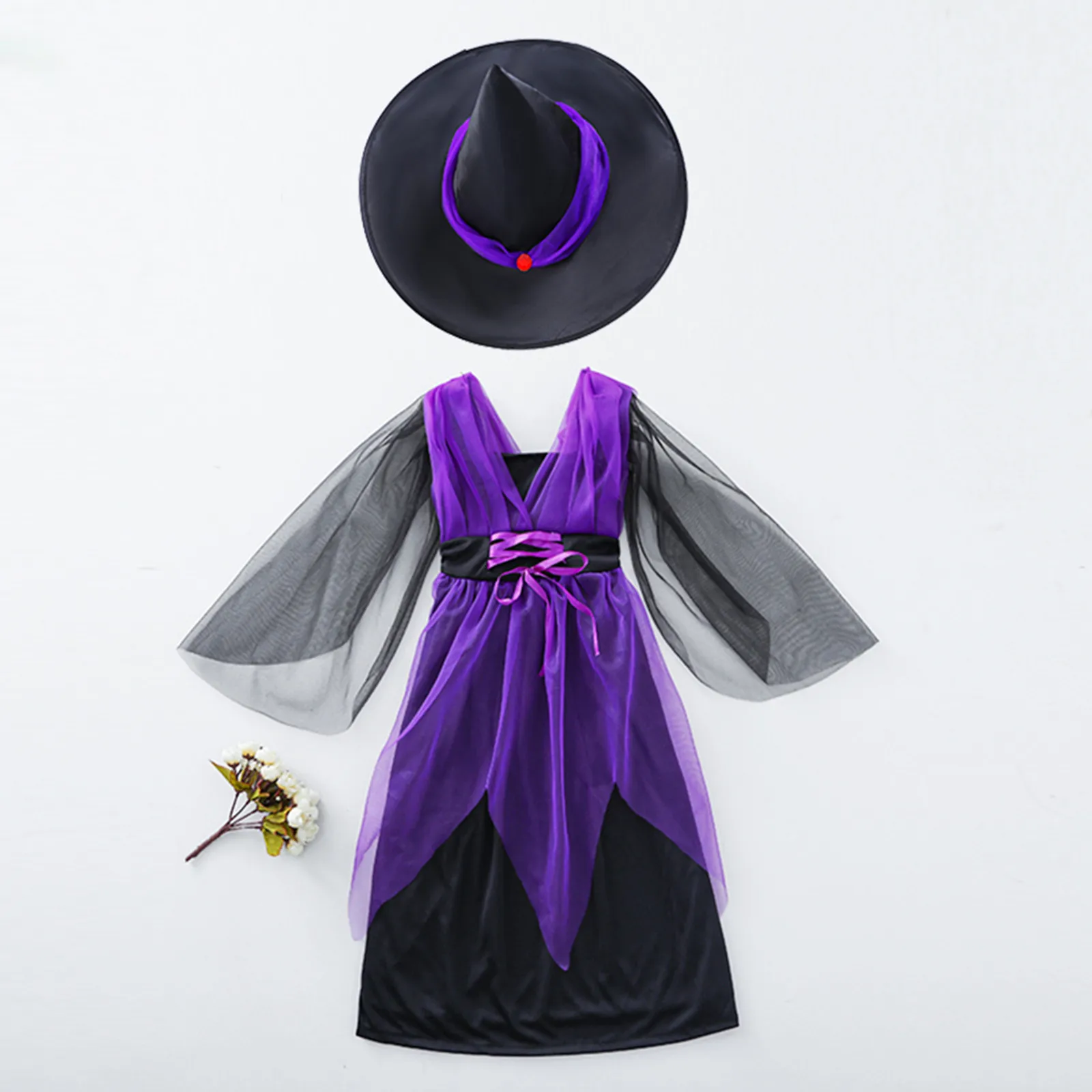 Костюм ведьмы на Хэллоуин, платье ведьмы, шляпа, вечерние ний костюм ведьмы, косплей-платье + шляпа колдуна, наряды, комплект детской одежды для девочек