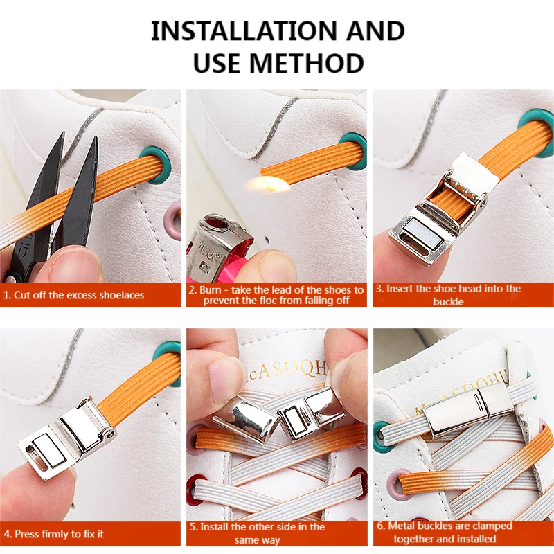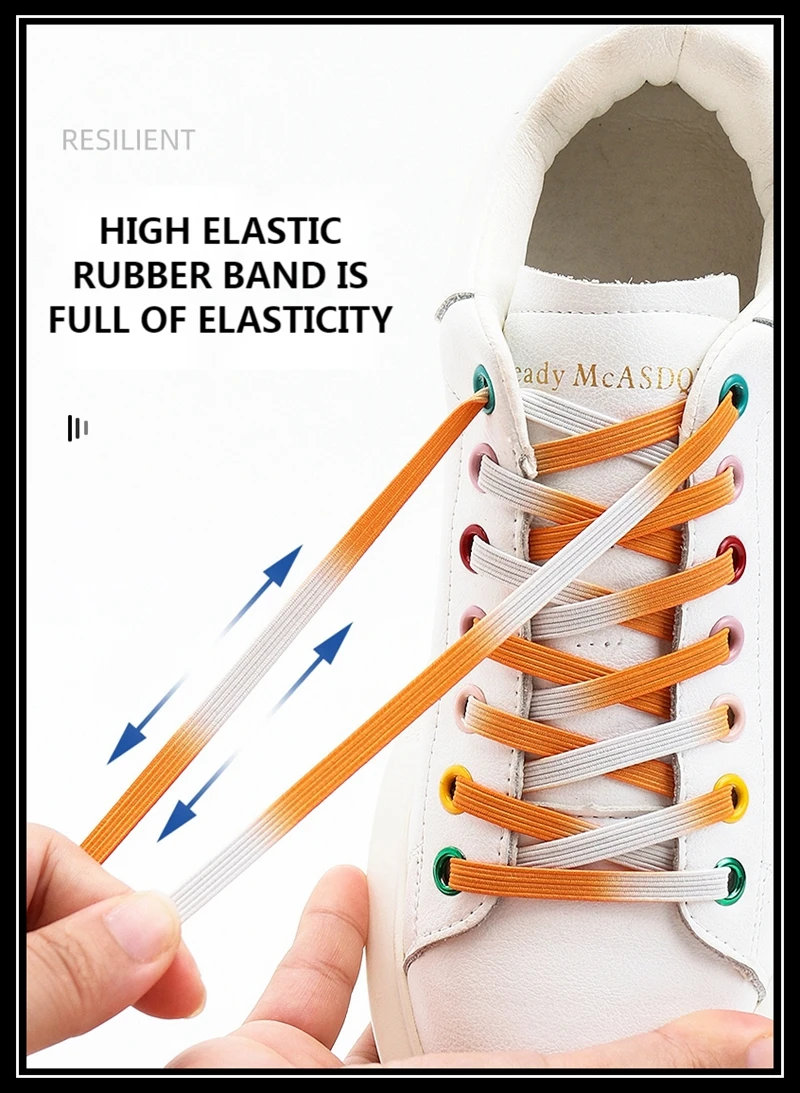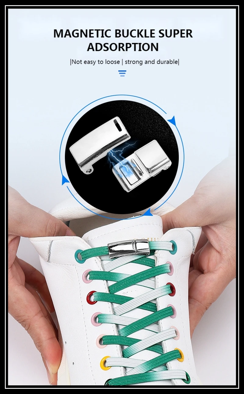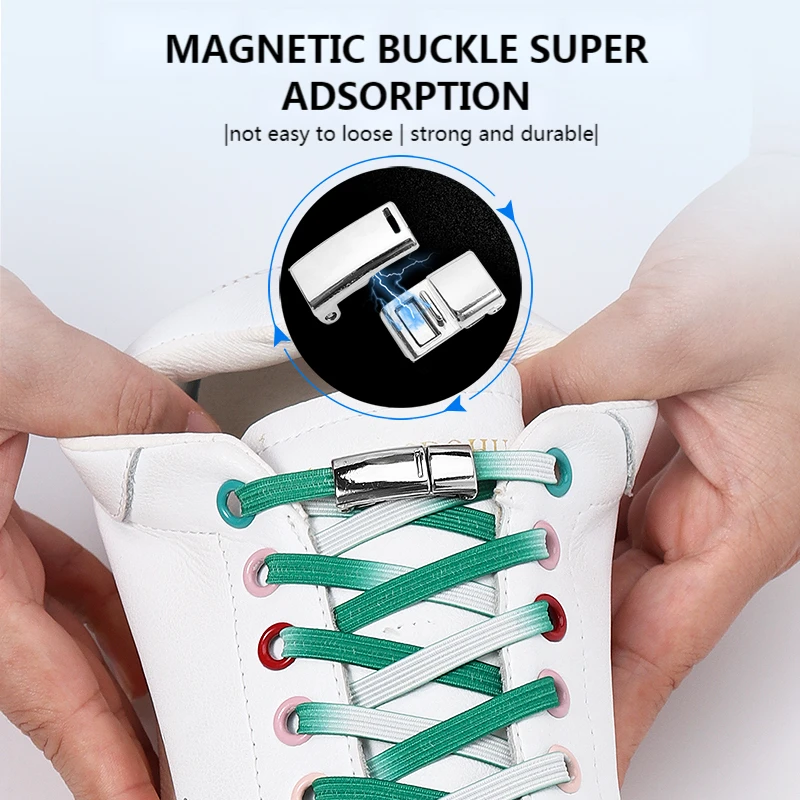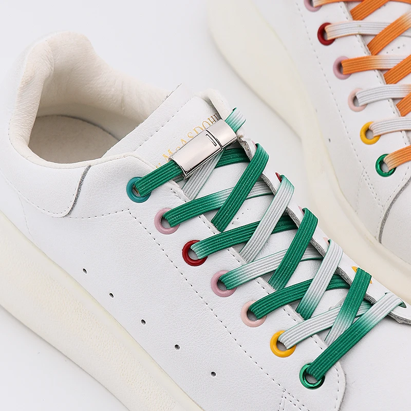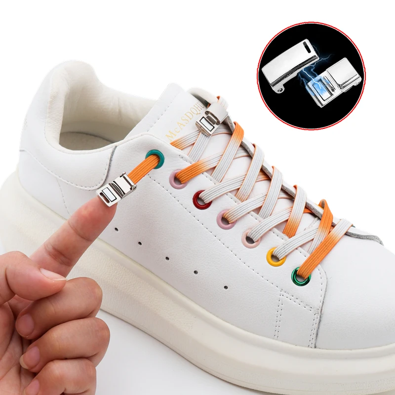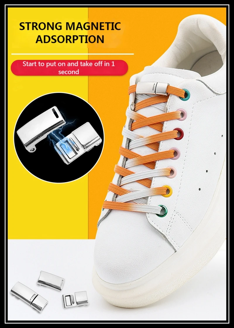 Градиентные плоские шнурки, магнитный металлический замок, без завязывания, эластичные шнурки для обуви, легко надевать и снимать, аксессуары для обуви, ленивые шнурки