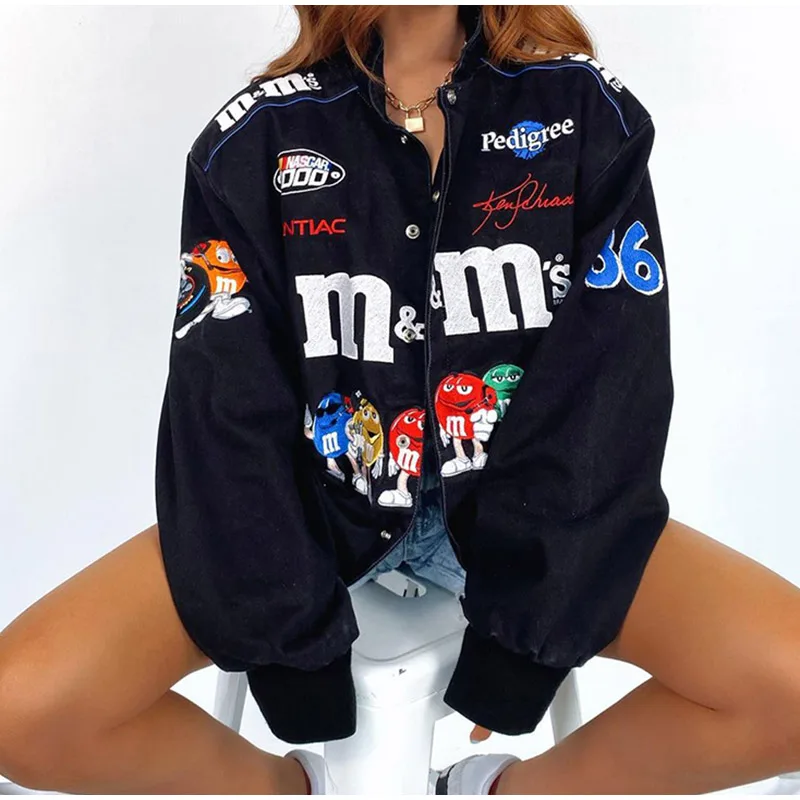 Куртка-бомбер женская демисезонная в стиле Харадзюку, с буквенным принтом, на молнии, с длинными рукавами, 2021