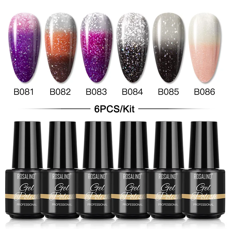 Гель-лак ROSALIND для ногтей, меняющий цвет при температуре, УФ-Пол...