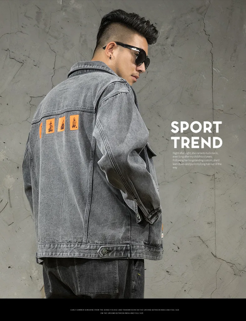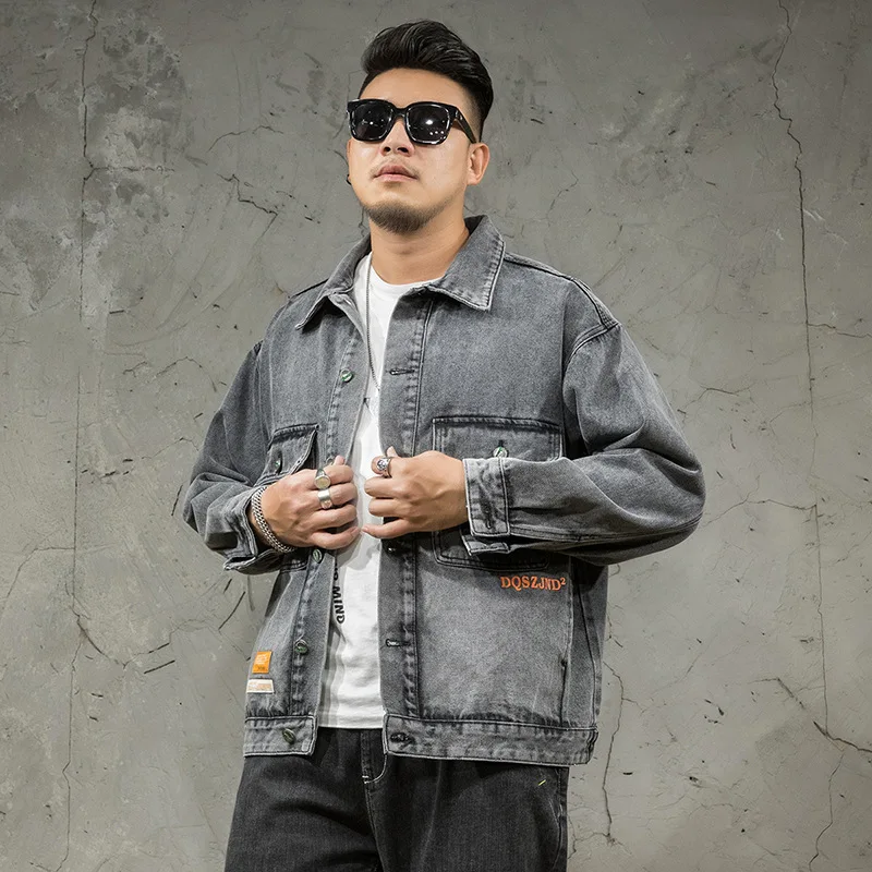 Повседневные джинсы в английском стиле; Новинка 2022 года; Сезон весна-осень; Уличная одежда в стиле хип-хоп; Джинсовая куртка-кардиган; Мужская брендовая одежда; Большие размеры; 7XL
