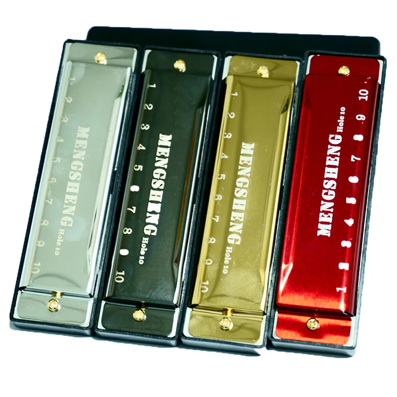 В каждом звуковом отверстии есть два тростника, каждое звуковое отверстие может издавать два звука (отстой и удар), поэтому есть 20 тонов. Номер на корпусе гармоники (1-10) повторяет шаг, чем больше количество, тем выше высота. Просто выдуйте или отсосите отверстие с номером на harnonica, это очень легко для всех.