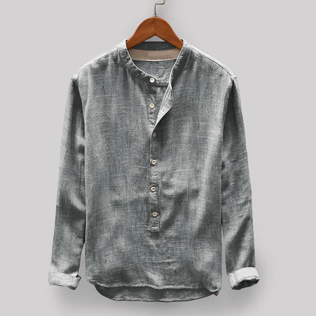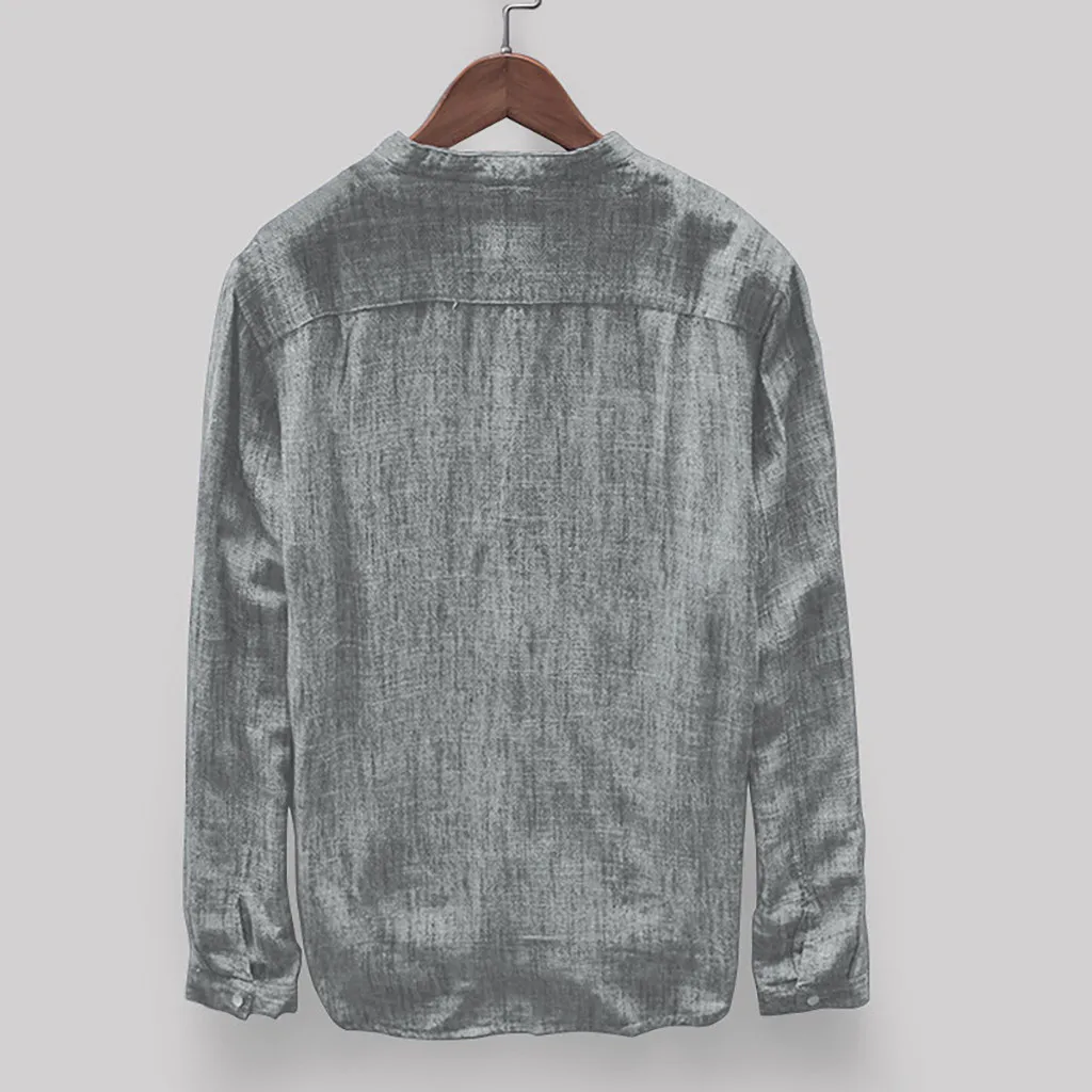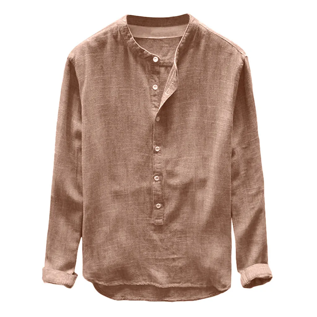 Модная мужская осенне-зимняя повседневная льняная и хлопковая блузка с длинными рукавами на пуговицах