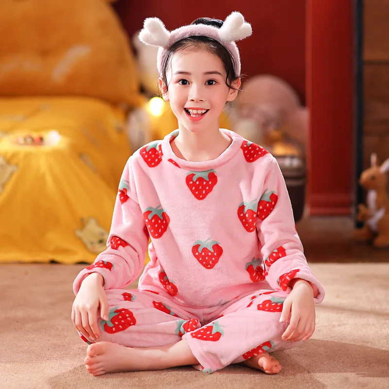 Зимние Детские флисовые пижамы, теплая фланелевая одежда для сна для мальчиков и девочек, бархатные детские пижамы, домашняя одежда, Мультяшные пижамные комплекты для мальчиков