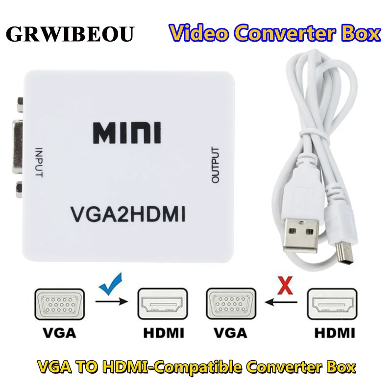 Портативный мини-преобразователь VGA-HDMI-совместимый преобразователь VGA2HDMI видео бокс аудио адаптер 1080P для ноутбука ПК HD ТВ проектора ТВ VGA2HDMI