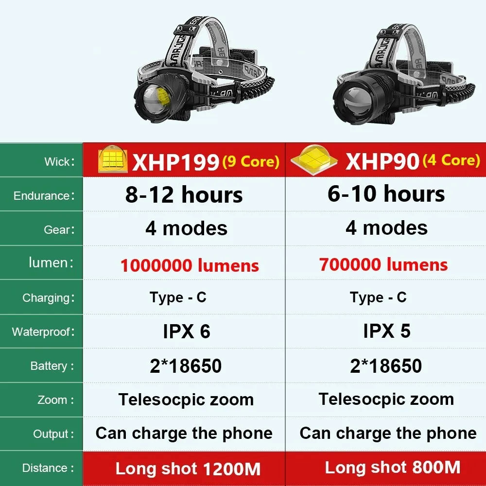 ♣Настоящий XHP199Налобный фонарь