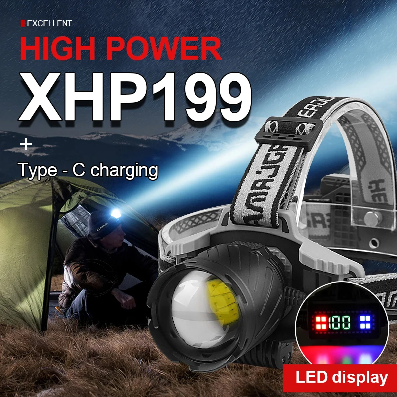 Новый мощный светодиодный налобный фонарь XHP199, мощный светодиодн...