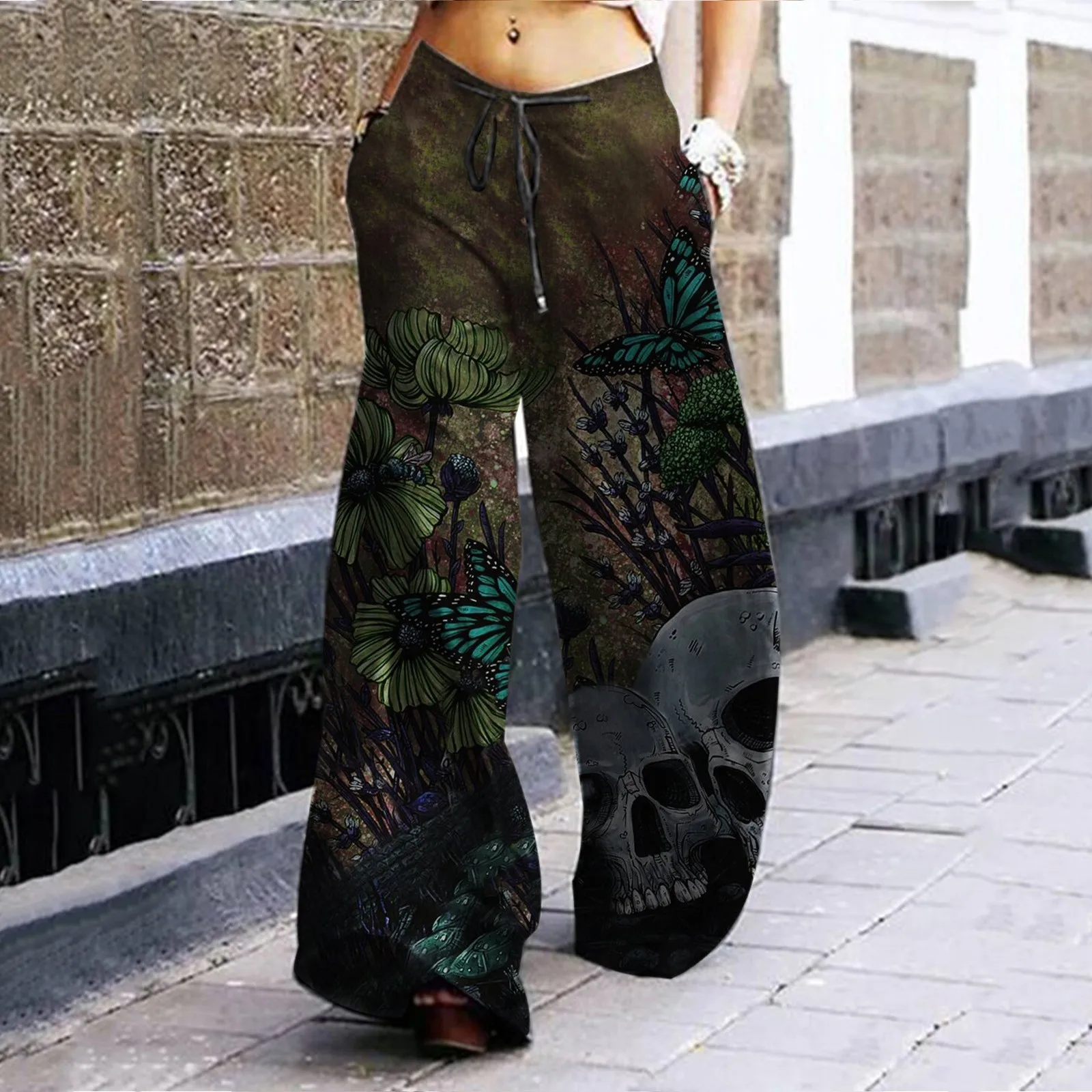 Женские брюки с широкими штанинами в стиле Харадзюку, брюки-карго с принтом на Хэллоуин, брюки-джоггеры на шнуровке с карманами, уличная одежда, спортивные штаны, 2021