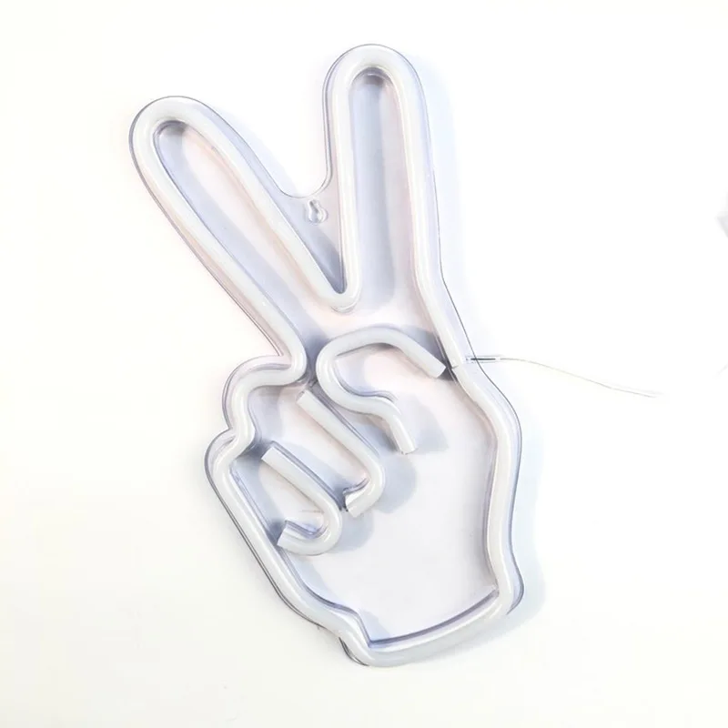 Светодиодный неоновый светильник Win Gesture, символ мира, ручная форма, Подвесной Настенный ночник на палец, художественная декоративная лампа для спальни, подарок на день рождения