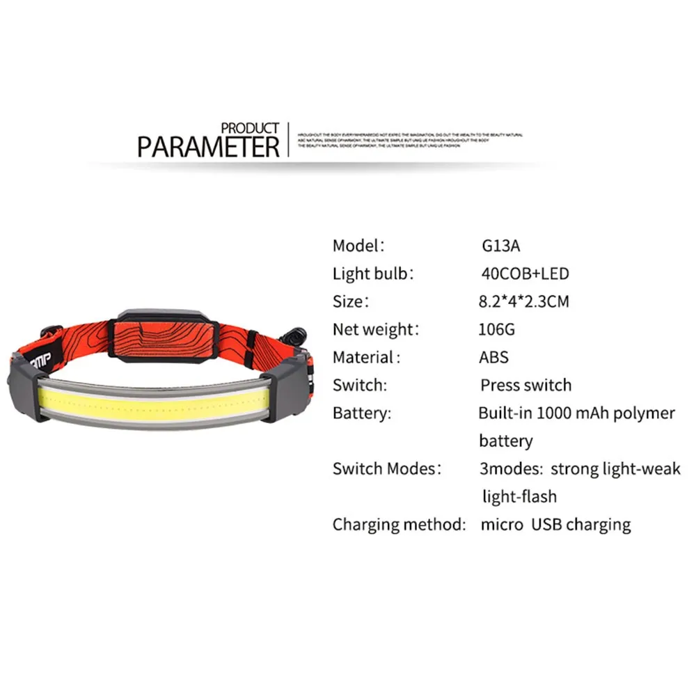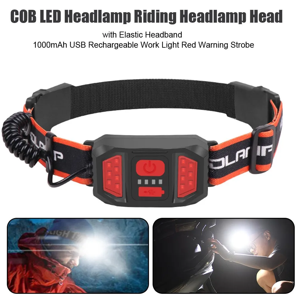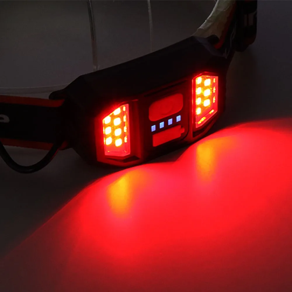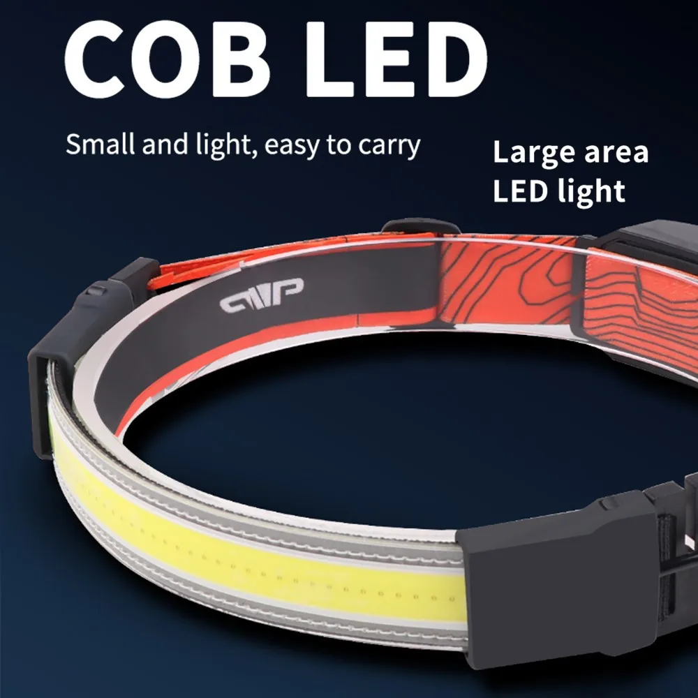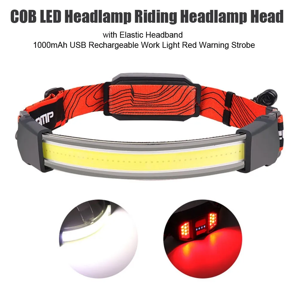 Светодиодный налобный фонарь с зарядкой по USB, суперяркий теплый белый COB + красный светильник, водонепроницаемый налобный фонарь с эластичным оголовьем
