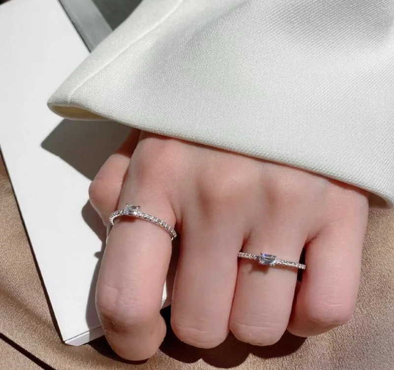 Женское составное кольцо из серебра 925 пробы, с квадратным прозрачным фианитом