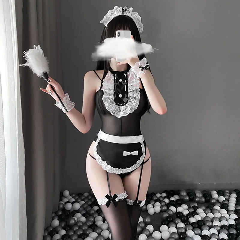 Эротические костюмы белой горничной для косплея, кружевное аниме се...