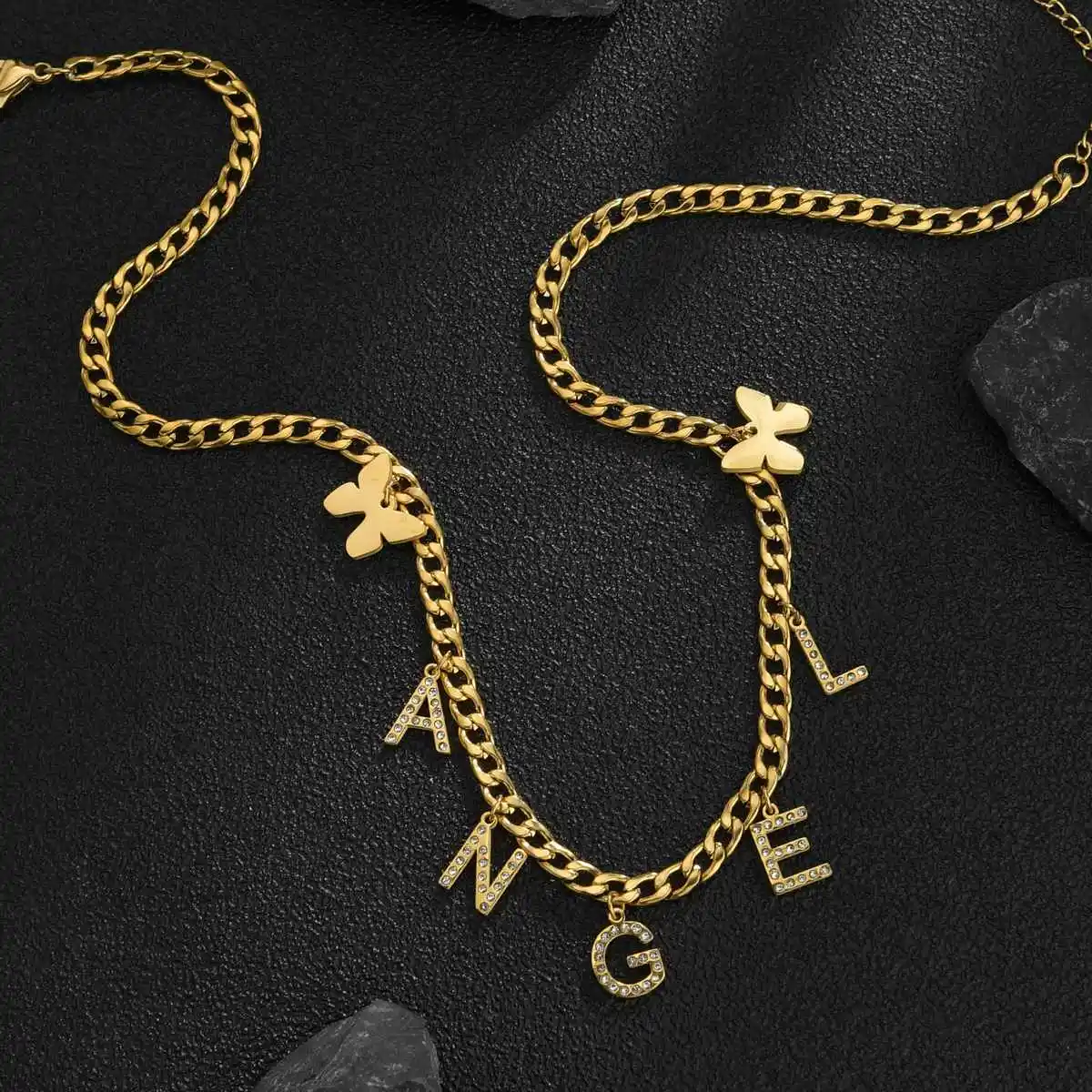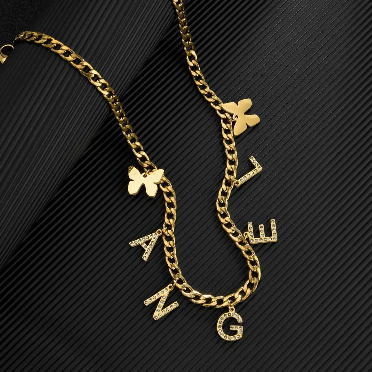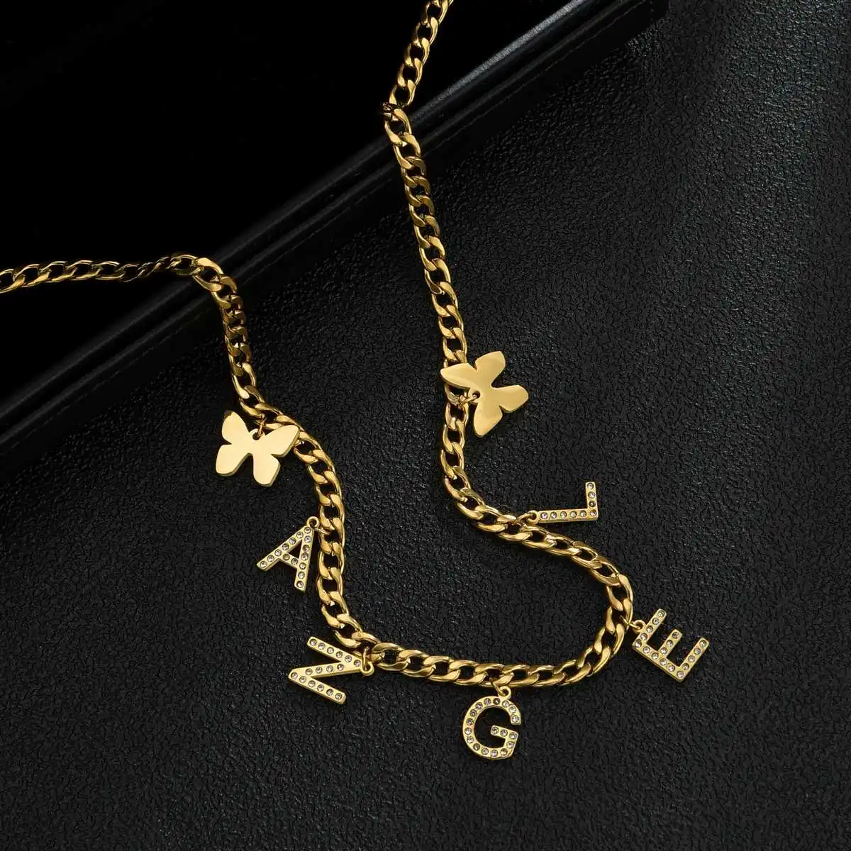 Имя:Индивидуальное Имя бабочка ожерелья из нержавеющей стали кубический циркон буквы кристалл кулон для женщин толстые цепи NK ювелирные изделия