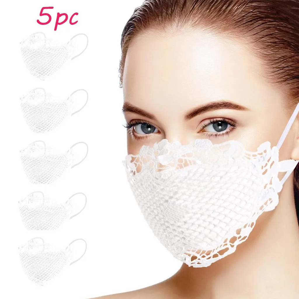 5 шт., маска для лица многоразовая с кружевной аппликацией