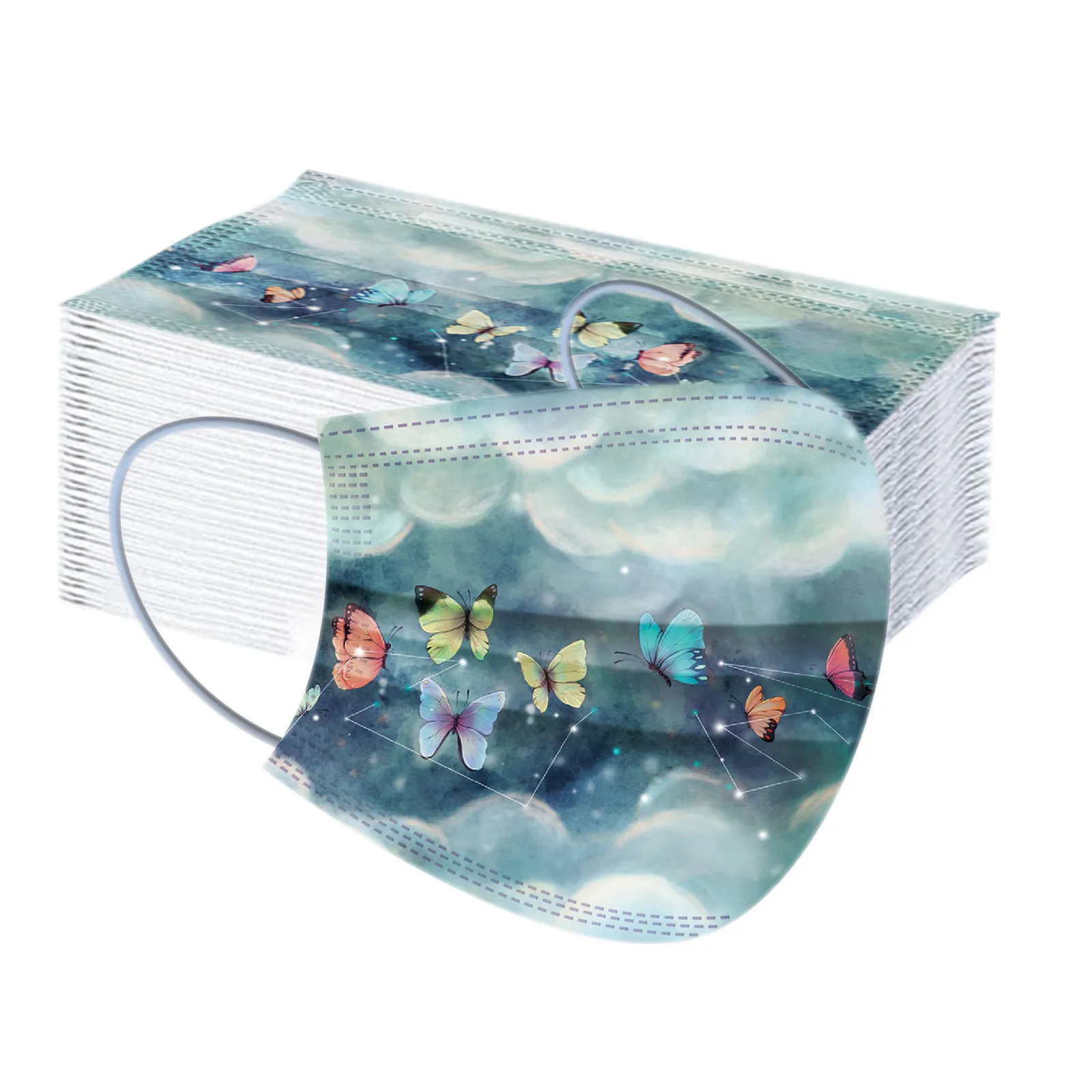 В3 слоя Нетканая одноразовая маска изготовлена из 3 слоев нетканого материала,Безопасен и безопасен для использования. Дышащий материал и милыйУзоры, которые делают его полезным и модным. Специальный 3 слоя из нетканого материалаДизайн, обеспечивает некоторую защиту от пыли, автомобильных выхлопных газов,Пыльца и т. д. эластичная Ушная петля, легко носить и не давит на уши.Маникюрный салон или любые другие области, где может потребоваться защита