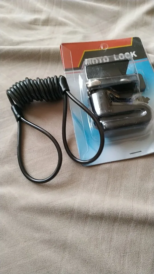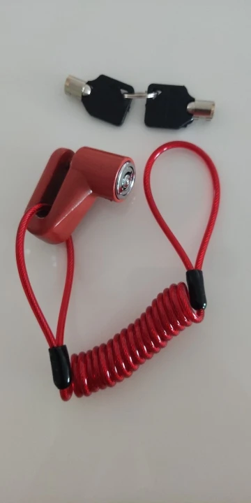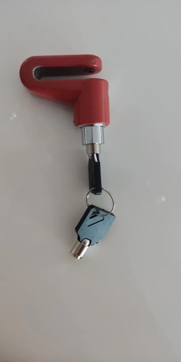 Замок является очень эффективным, он блокирует тормозные диски скутера, и он идеально подходит для блокировки его в короткие сроки в общественных местах или в поездах.