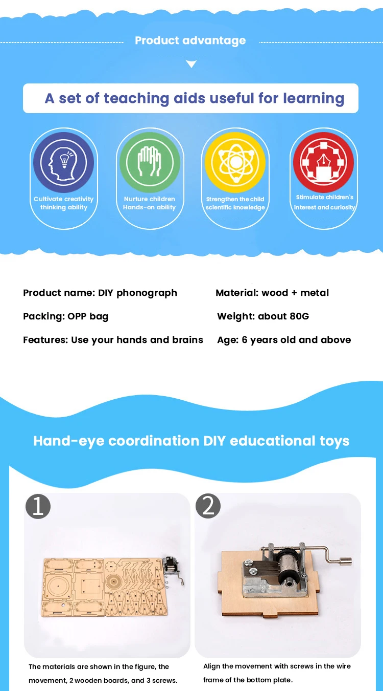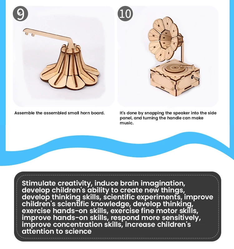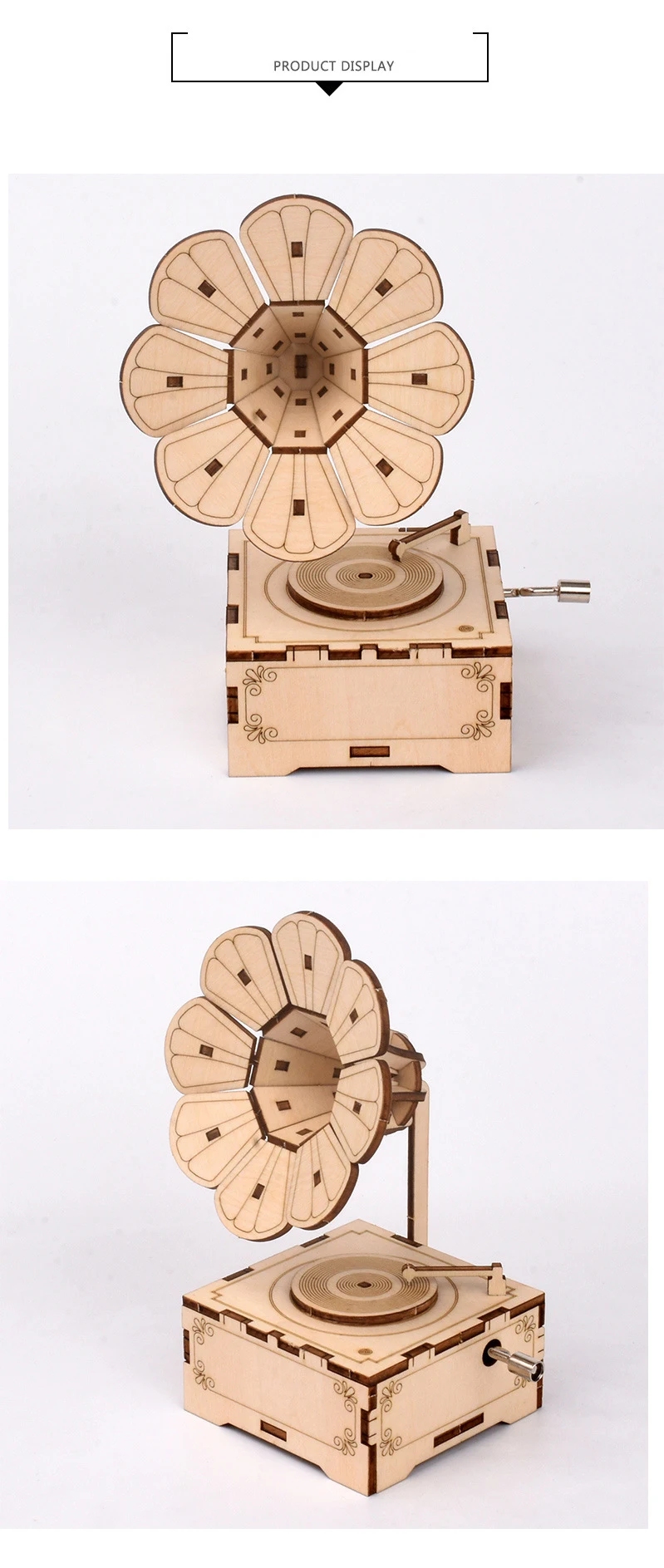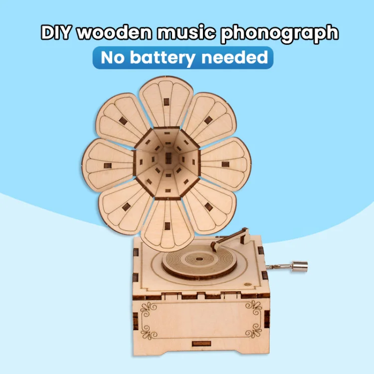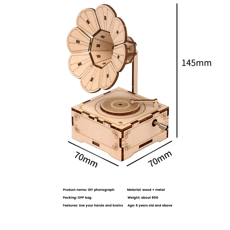 Деревянный граммофон для самостоятельной сборки, музыкальная шкатул...