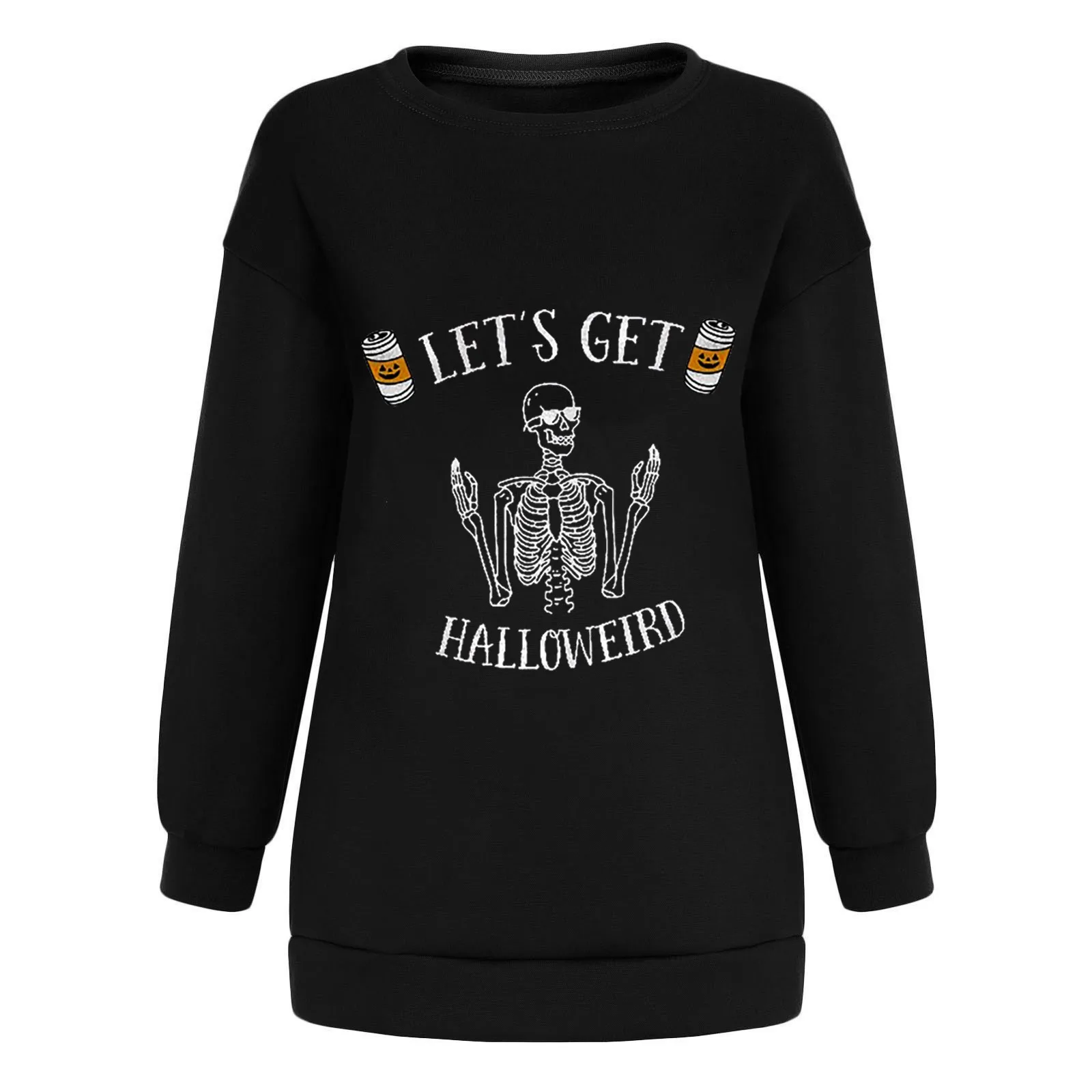 Женская толстовка на Хэллоуин, Повседневная Толстовка с забавным принтом, Свободный пуловер с круглым вырезом, размера плюс
