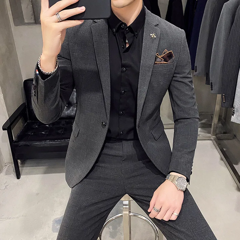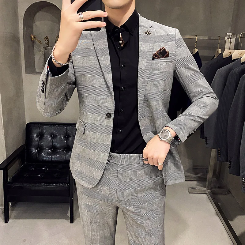 Костюм из трех предметов, пиджак и брюки, модный мужской повседневн...