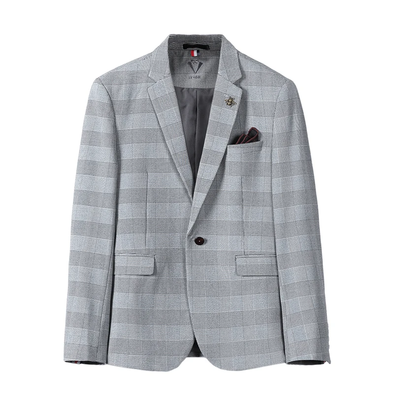 Мужской деловой однобортный Блейзер в клетку, приталенный Повседнев...