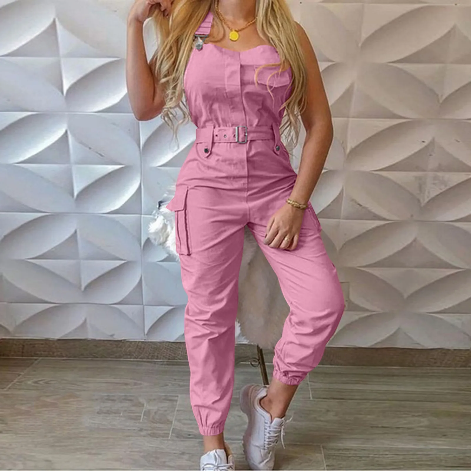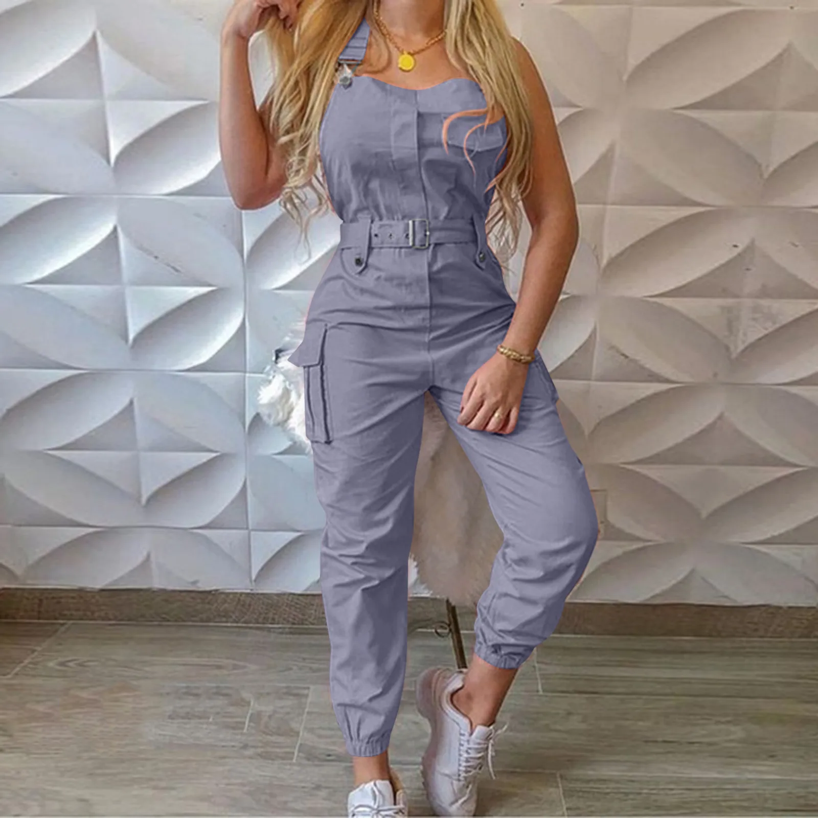 Женский модный Регулируемый комбинезон с ремнем на спине, однотонный комбинезон с карманами