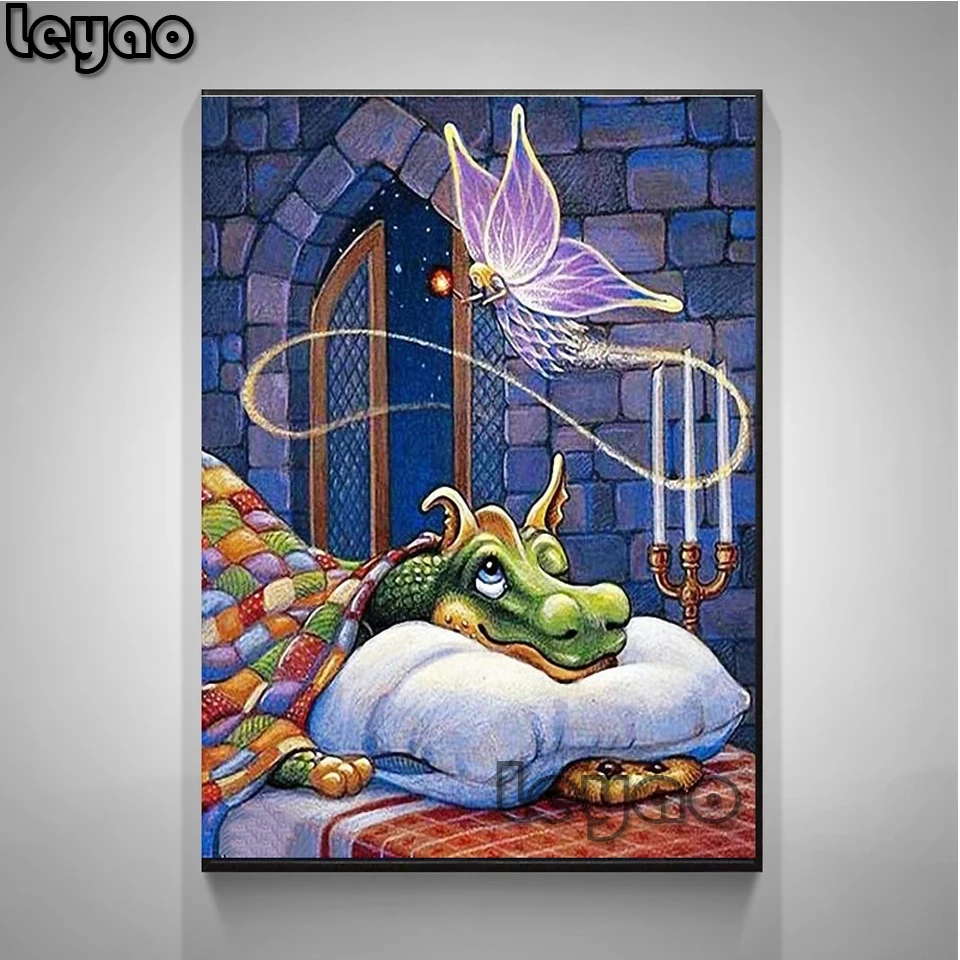 Полноразмерная Алмазная картина с бабочками, сказочные драконы, укр...