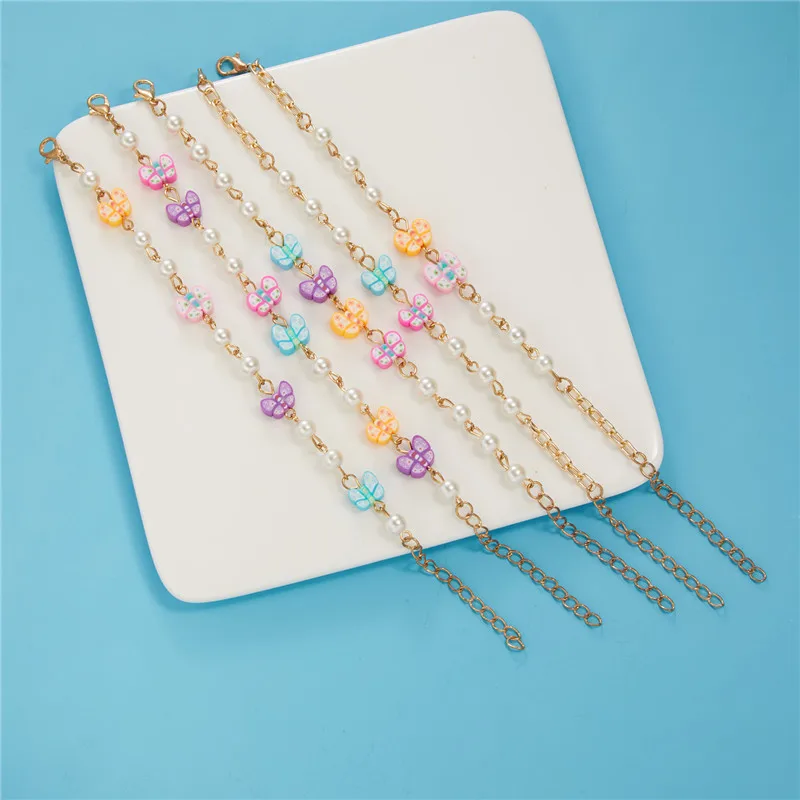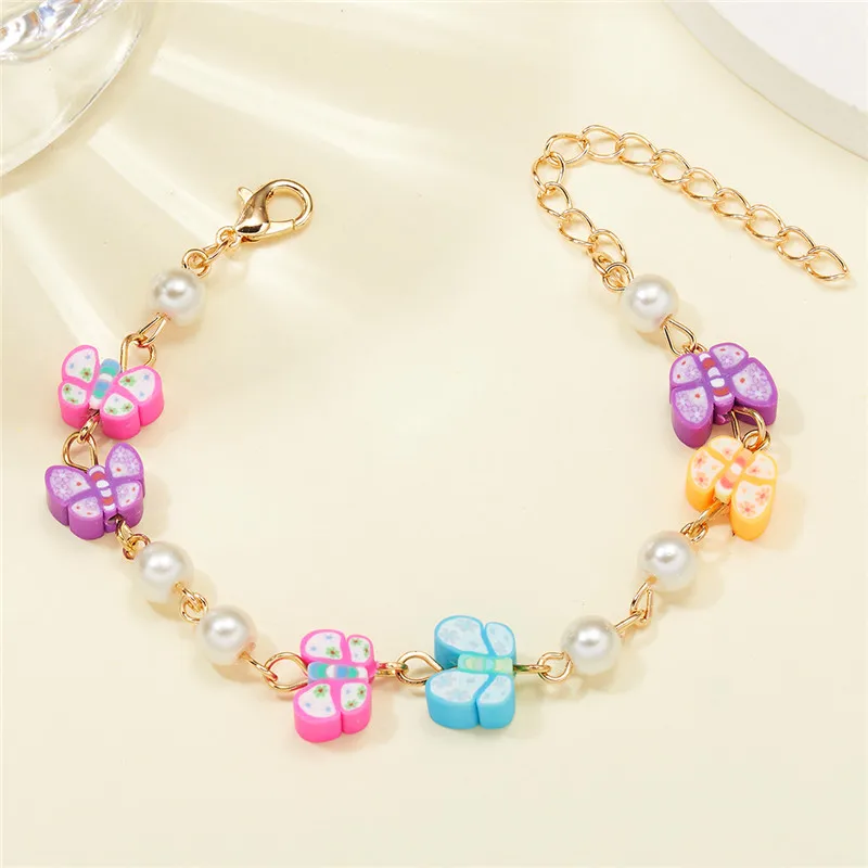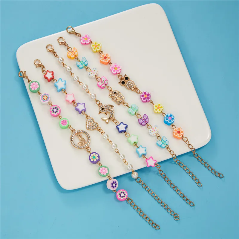 Модные милые мягкие браслеты из полимерной глины с бабочкой цветком звездой дельфином глазами слоном жемчужинами для женщин и девушек ювелирные изделия в подарок