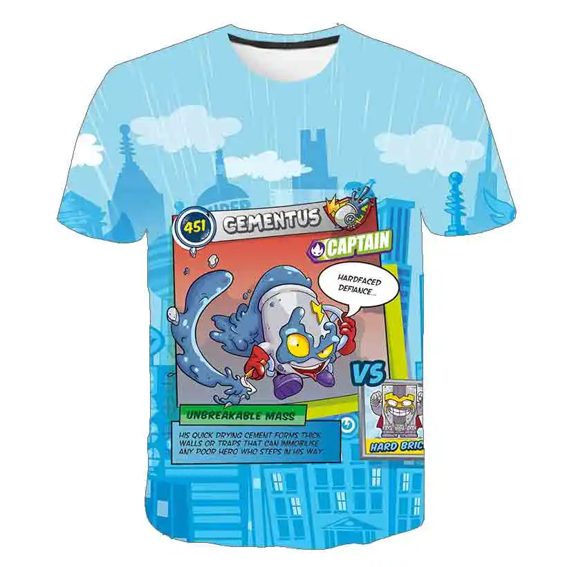 Летняя модная футболка для игры, летняя футболка с коротким рукавом и круглым вырезом, футболки Superzings для маленьких мальчиков, детские повседневные топы с мультяшным рисунком, футболки для девочек