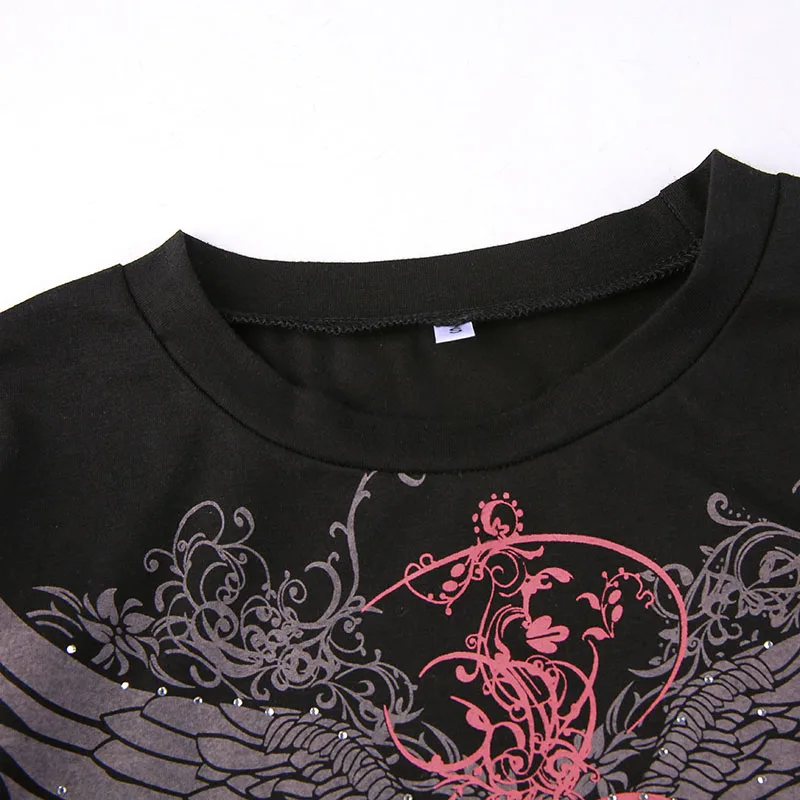 Винтажная Футболка Gitana с алмазным принтом, женский укороченный Т...