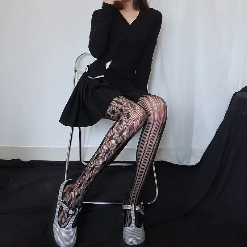 Чулки в стиле "Лолита", ажурные колготки в стиле Харадзюку, Клубная одежда с различными узорами, вечерние колготки, сексуальное нижнее белье, косплей, готический костюм