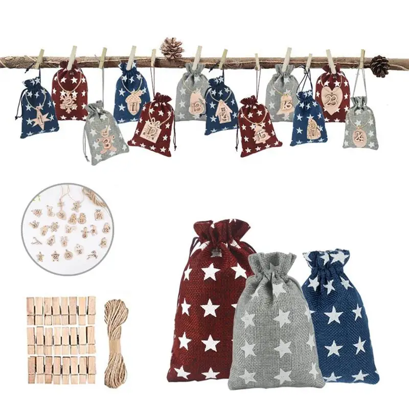 Рождественский Адвент-календарь, мешочки на шнурке, 73 шт.компл.