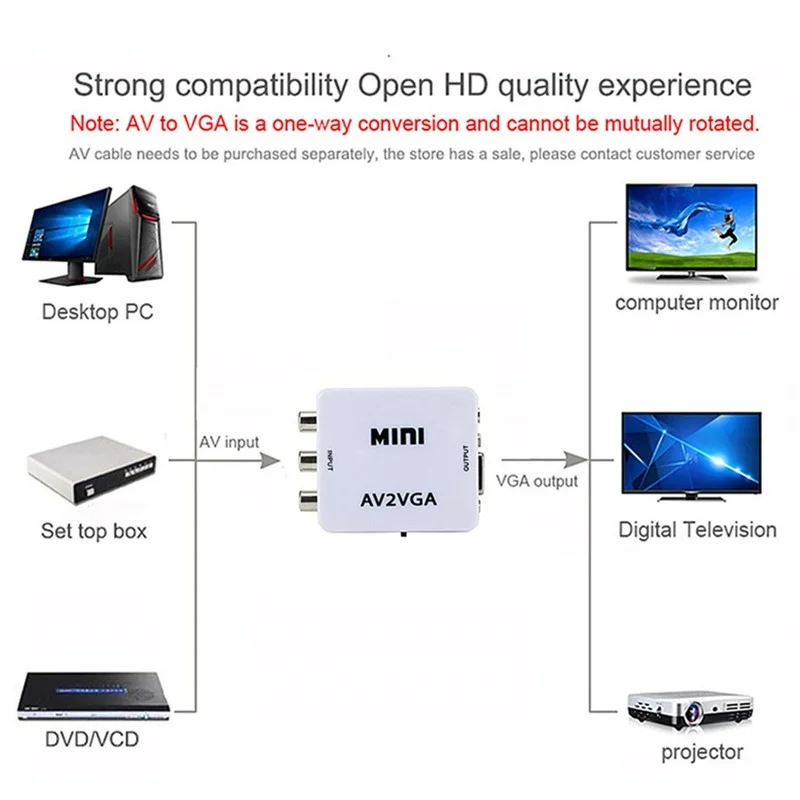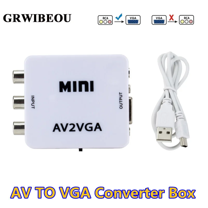 Преобразователь видео Mini HD AV2VGA, преобразователь AV RCA CVBS для VGA, видеопреобразователь с 3,5 мм преобразователем аудио в ПК HDTV