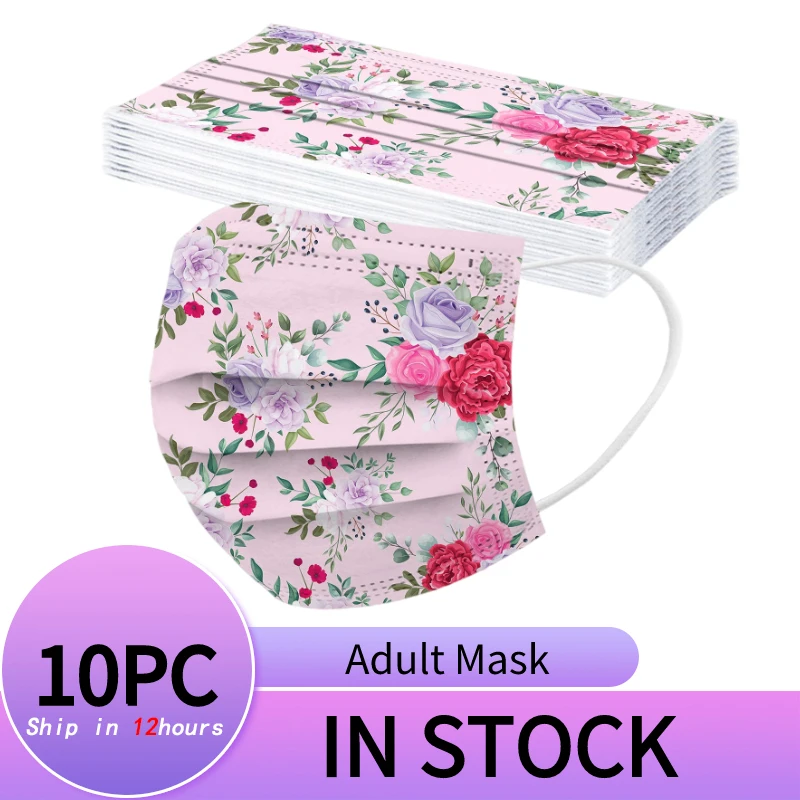 10 шт. Модные женские одноразовые маски с цветами 3-слойная защитна...