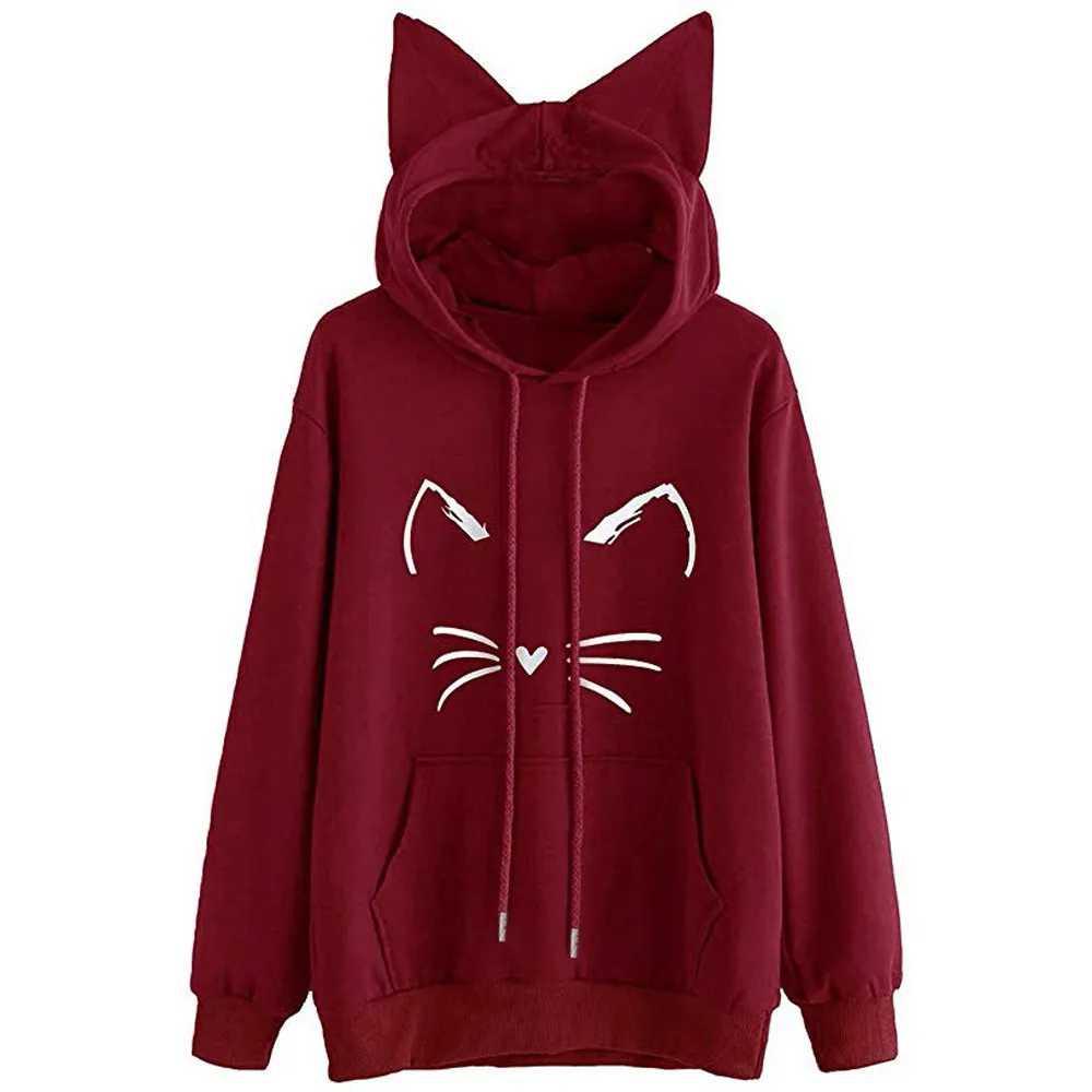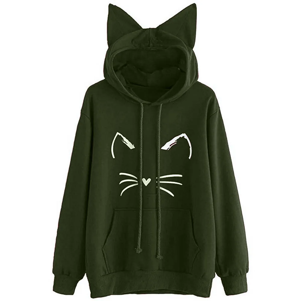 Женский свитшот с длинным рукавом, худи с кошачьими ушами свитшот, ...