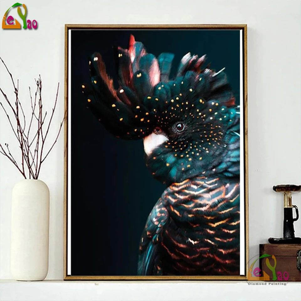 5D Diy австралийская искусственная живопись, черная картина такаду, настенное искусство, Алмазная мозаика, синий попугай, птица, искусство, картина для декора гостиной
