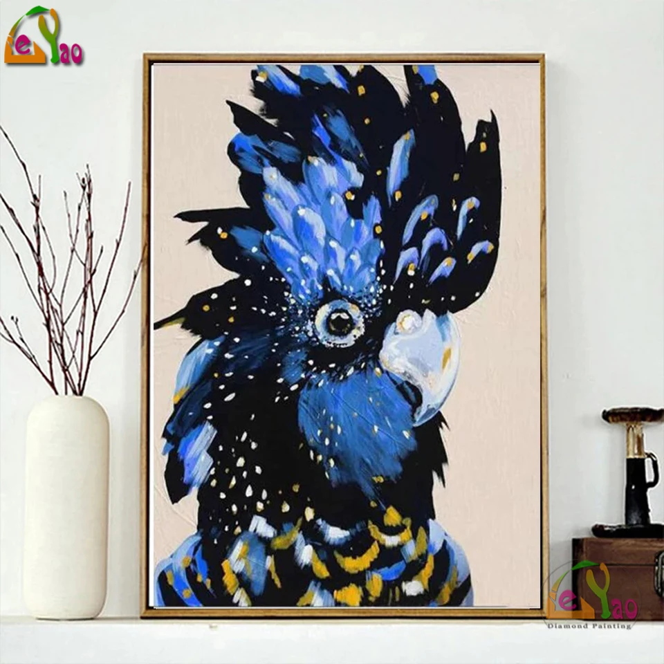 5D Diy Австралия Алмазная с изображением птицы Картина черный Какаду настенная Алмазная мозаика синий попугай птица художественная картина для украшения гостиной
