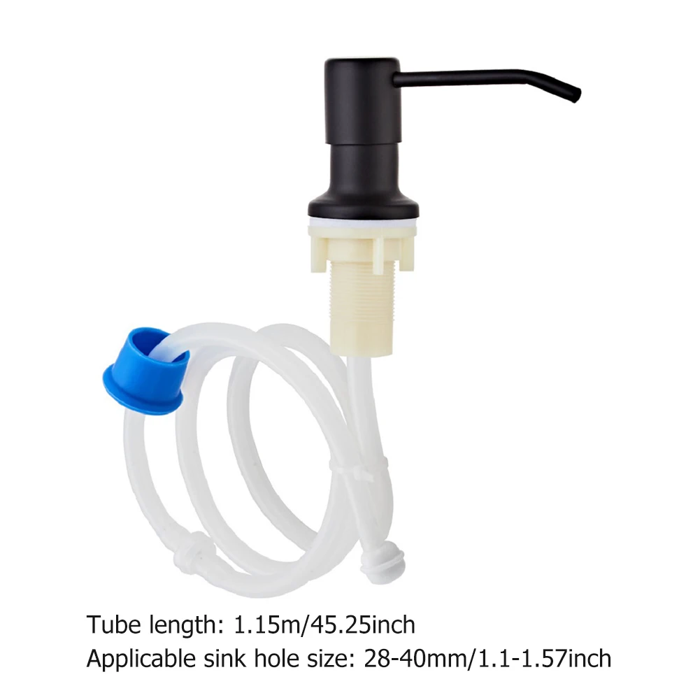 304 дозатор для жидкого мыла из нержавеющей стали, набор удлинительных трубок, сменный насос для лосьона, насадка для домашней ванной комнаты, аксессуары для кухонной раковиныХарактеристика:Изготовлен из нержавеющей стали, не ржавеет, прочный и долговечный.Прилавок для мыла подходит для всех видов кухонных раковин.Очень легко установить всего за несколько минут.Трубку можно поместить непосредственно в оригинальную бутылочку для мыла для длительного использования без замены.Примечание: Этот продукт содержит вещи, как показано на рисунке (напор + силиконовая трубка).Спецификация:Материал: нержавеющая сталь + пластик + силиконДлина трубки: 1,15 м/45,25 дюймаПрименимый отверстие раковины Размер: 28-40 мм/1,1-1,57 дюймовИспользование: кухонные и ванные раковиныЦвет: серебристый, черный, золотойПримечание:В связи с различиями мониторов и эффектами освещения реальный цвет товара может немного отличаться от цвета на фотографиях. Спасибо!Возможны отклонения в 1-2 см вследствие измерений вручную.