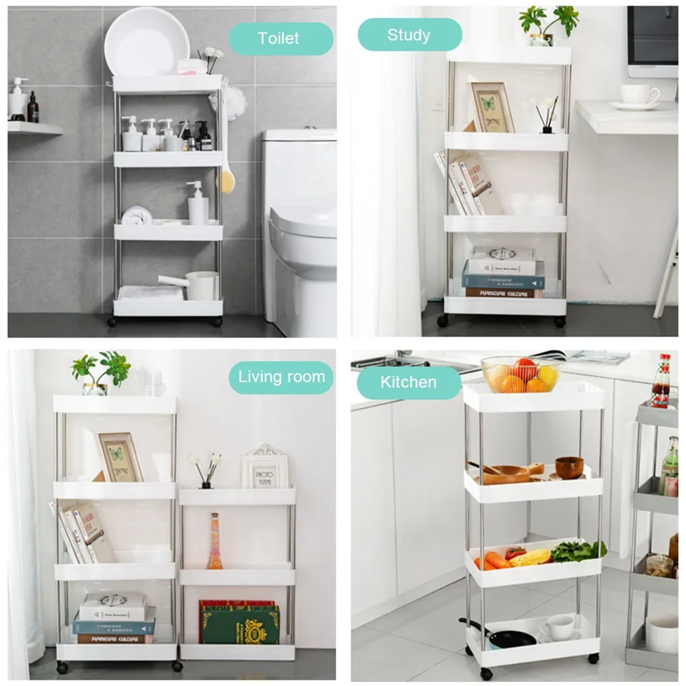 4-колесная тележка, передвижная стойка для хранения, подвижная полка для хранения товаров, многослойная кухонная посуда, туалетные принадлежности