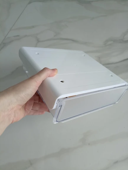 Упаковано так круто, что дай бог каждому продавцу. Ничего не повредилось. Ящик в целом удобный, только ездит немного тяжеловато, если в него положить что-то не легкое. В комплекте инструкция по установке (понятная интуитивно) и три клейкие полосы (одна запасная). Прозрачный силиконовый крепеж, я такие покупала для разных домашних дел в лентах - удобный, со временем подсыхает, но держит. Удаляется с поверхностей без проблем, если вдруг будет нужно снять, следов не останется, хотя придется немного повозиться с отдиранием. Установка прошла легко, ненапряжно и комфортно, молодцы ребята, даже ребенок с такой инструкцией справился бы. В общем, товаром довольна, рекомендую. Жаль не было полностью черных, у меня черный икеевский стол, смотрелось бы лучше.