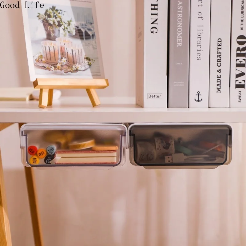 Ящики для хранения под столом, небольшой Невидимый ящик для спальни, органайзер для канцелярских принадлежностей для дома и офиса