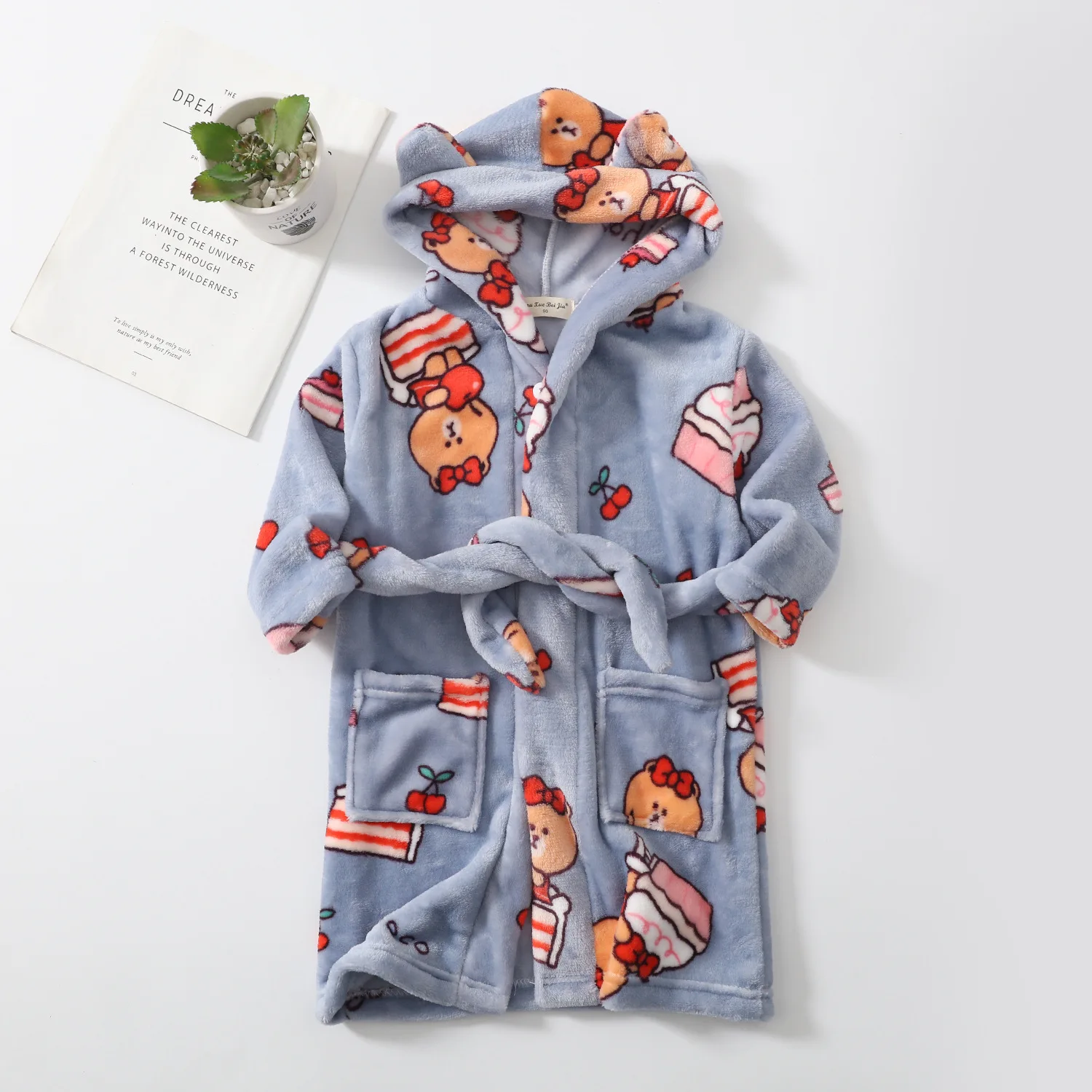 Мультяшный детский халат, фланелевый детский халат с длинным рукаво...