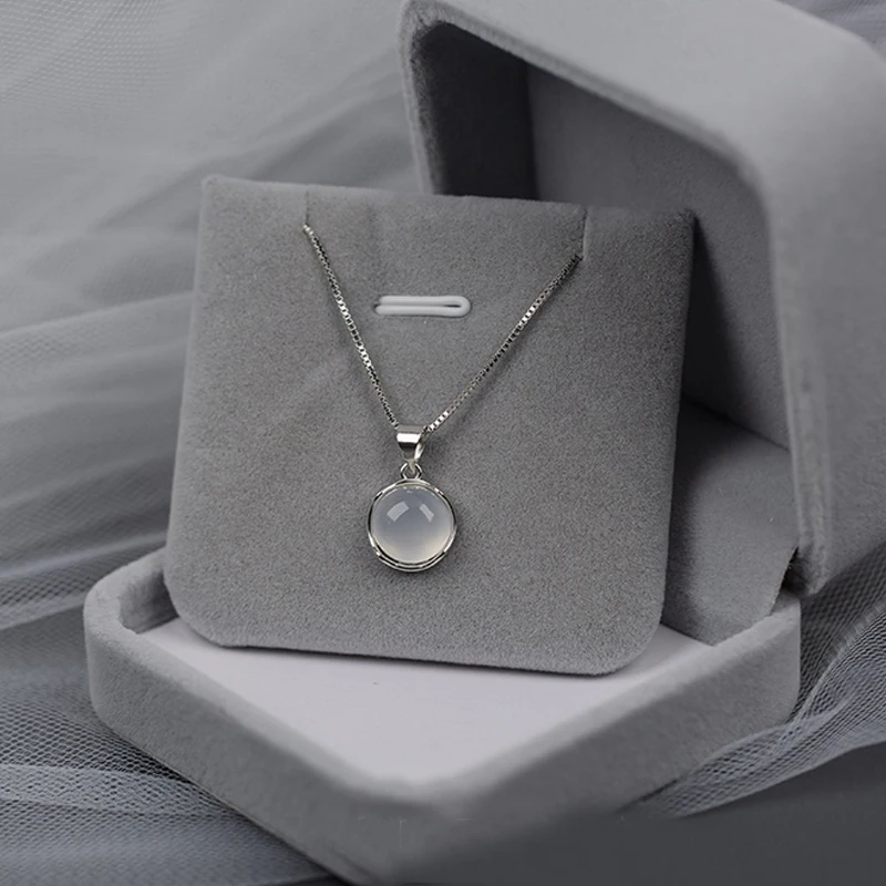 Женская белая халцедон круглая подвеска ожерелье с нишевым дизайном ключицы цепи.