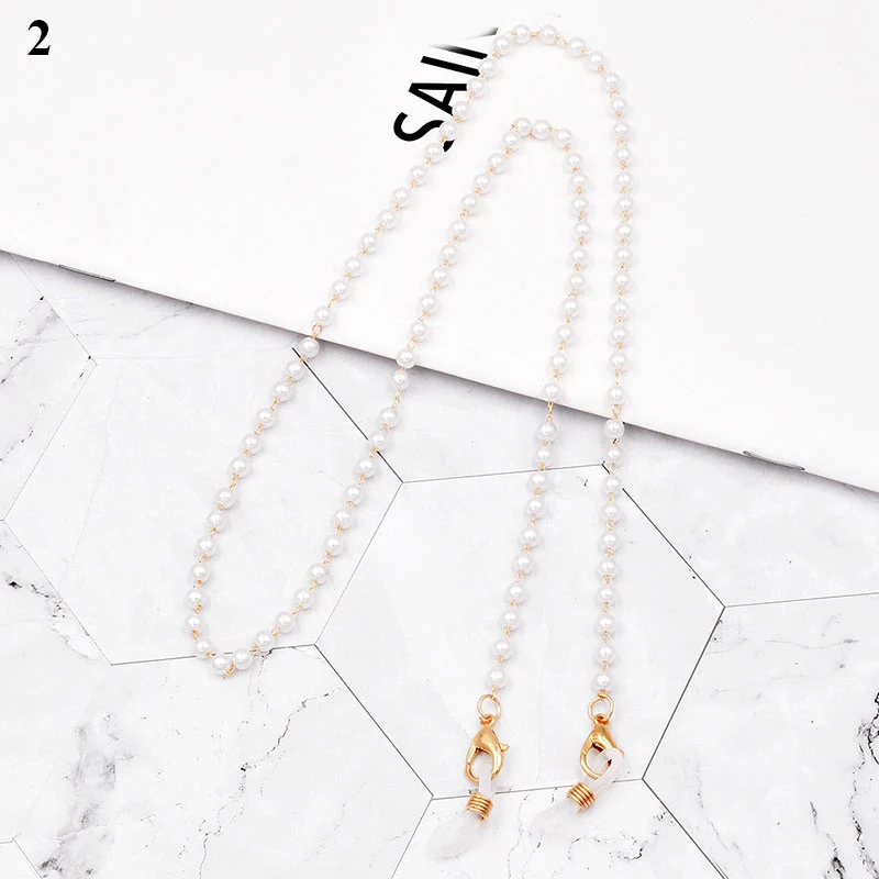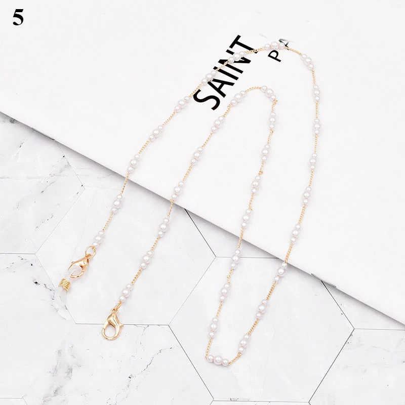 Металлические жемчужные очки с цепочкой, внешний вид изысканный и красивый. Многофункциональное использование, можно не только использовать как очки с цепочкой, но и как цепь маски,
