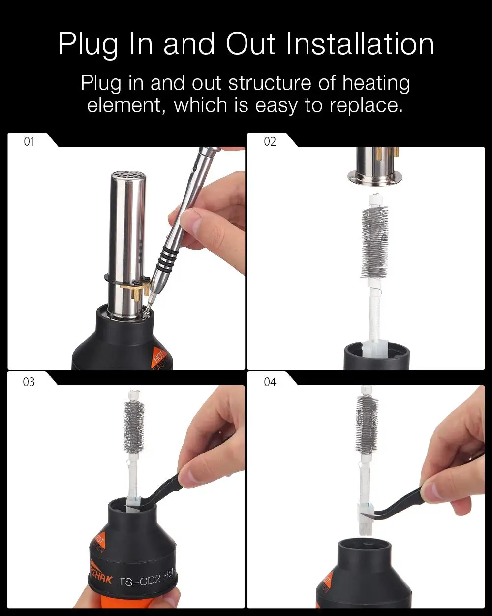 Особенности:1. Цифровое управление и цифровой дисплей: с датчиком с замкнутым контуром и высокой мощностью, температура Контролируется цифровым ЖК-дисплеем PWM ands, что приводит к точной температуре стабильного диапазона. Может адаптироваться к различным целям.2. Бесщеточный вентилятор: Бесщеточный вентилятор внутри регулируется воздушным потоком, мягкий ветер, двигатель с длительным сроком службы и низкий уровень шума3. Режим постоянной температуры: точная температура и стабильность без ветрового эффекта.4. Автоматический режим: в машине есть датчик, система переходит в рабочий режим (постоянная температура нагрева воздуха) до тех пор, пока Вы подберете устройство, И переходит в режим ожидания (остановка нагрева-охлаждение-задержка сна) При установке обратно в раму увеличенный срок службы нагревательного элемента защищает горячий воздух g un. Прост в использовании.5. Режим подключения и выключения: интерфейс нагревательного элемента-разъем, Палочки легко заменяются.6. Портативная машина: небольшого размера светильникХарактеристики:ИмяG-un с бесщеточным вентилятором с постоянной температурой горячего воздухаМодельGJ-8019LCDНапряжениеAC110V/AC220VМощность450 ~ 700 ВтТип двигателяБесщеточный с шарикоподшипникомСрок службы двигателя> 10000 часовТип воздушного потокаБесщеточный вентиляторВоздушный поток80 ~ 160 л/мин (макс)Диапазон набора температур280 ℃∽ 480 ℃Тип дисплеяЖК-цифровой дисплей разрешение 1 ℃Длина шнура150 смРазмер машины? 48 (handsle) ? 67 (макс) x Длина 300 ммВес0,35 кг (включая шнур)Шум<45 дБРабочая температура0 ∽ 40 ℃Температура хранения-20 ∽ 80 ℃Влажность хранения35% 45%Применение:1. Подходит для различных целей пайки или распайки электронных компонентов, таких как: SOIC, CHIP, QFP, PLCC, BGA, SMD и т. д.2. Применимо к термоусадке, сушке, удалению покраски, удалению клея, размораживанию, нагреванию, сварке пластика и т. д.Инструкции по эксплуатации:1. Возьмите раму на ровный Рабочий стол с горячим воздухом, поставьте раму на раму и подключите источник питания.2. Установите необходимую насадку (попробуйте использовать большую насадку).3. Включите выключатель питания и поместите на экран «000», так как устройство находится в режиме ожидания.4. Возьмите станок рамы и начните нормально нагреваться. Отрегулируйте T-образную ручку для установки температуры, наденьте ручку для настройки потока воздуха. Когда светодиодный индикатор быстро мигает, это указывает на то, что температура достигает заданного значения, устройство находится в постоянном состоянии, и вы можете им пользоваться. Диапазон заданной температуры: 280 ~ 480 ℃.5. Поставьте машину на раму после работы, машина автоматически перейдет в режим ожидания (отключение тока нагрева -- выдувание воздуха на высокой скорости для охлаждения нагревательного элемента -- задержка работы 30 ”для отключения вентилятора -- ЖК-дисплей «000»).6. Снова снимите устройство с рамки, оно немедленно войдет в рабочее состояние по значению настройки. При стабилизации температуры на ЖК-дисплее отображается температура выхода воздуха.7. Выключите выключатель питания в случае длительной остановки работы.Сопла для демонтажа монтажных палочек:1. Для установки поместите выбранное сопло на выпускную трубку, затяните винт.2. Чтобы разобрать сопло, Ослабьте винт, затем вытащите его.Замена нагревательного элемента горячим воздухом:* Нет нео