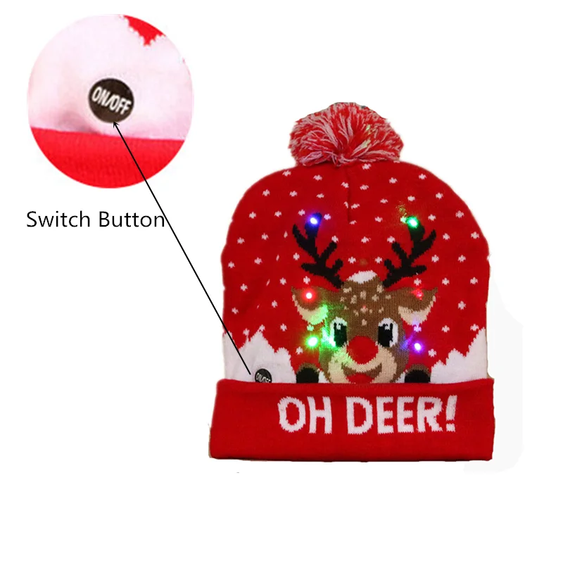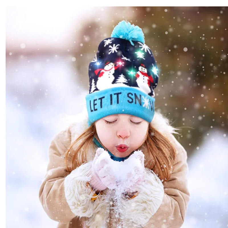 Новинка, вязаная шапка для взрослых и детей, со светодиодной подсветкой, рождественские шапки с надписью Merry, Рождественская шапка с Сантой, светящаяся детская шапка, Рождественский подарок