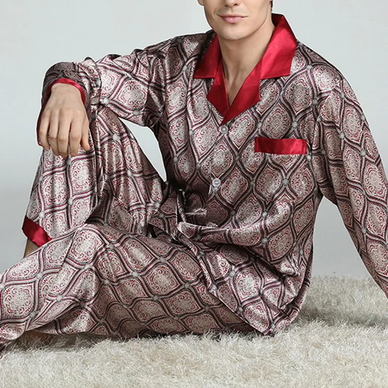 Пижамный комплект Мужской Шелковый атласный, одежда для сна в современном стиле, шелковая ночная рубашка, мягкая удобная домашняя пижама для сна