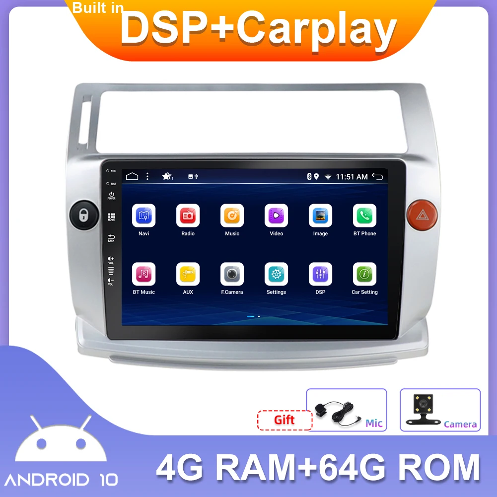 Автомагнитола 2 Din, 9 дюймов, GPS-навигация, стереоплеер, 4 Гб + 64 ГБ, для Citroen C4 C-Triumph C-четыре 2004-2009 Carplay DSP, 2DIN
